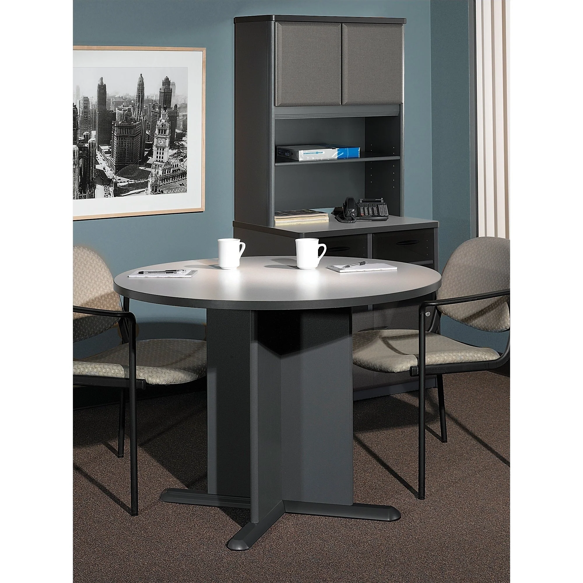 Via Round Melamine Table with Metallic X-cross Base