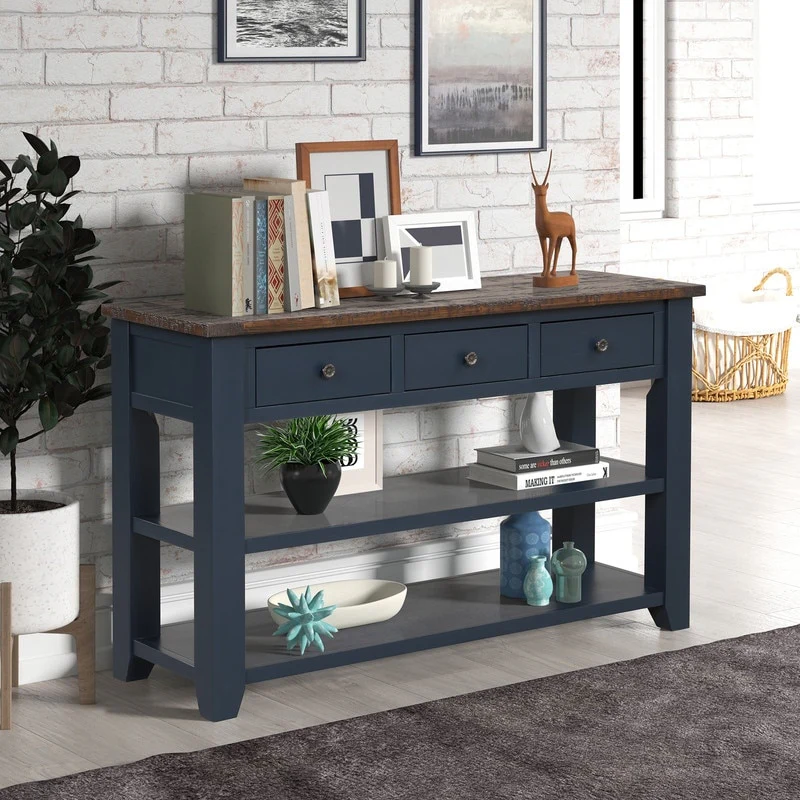 Wood Console Table with 3 Storage Drawers and 2 Shelves
