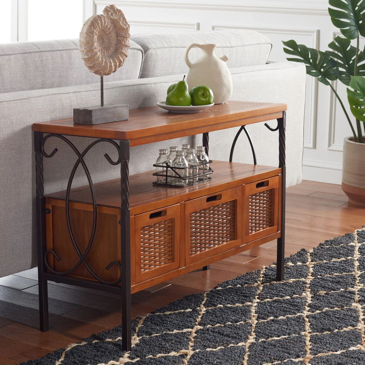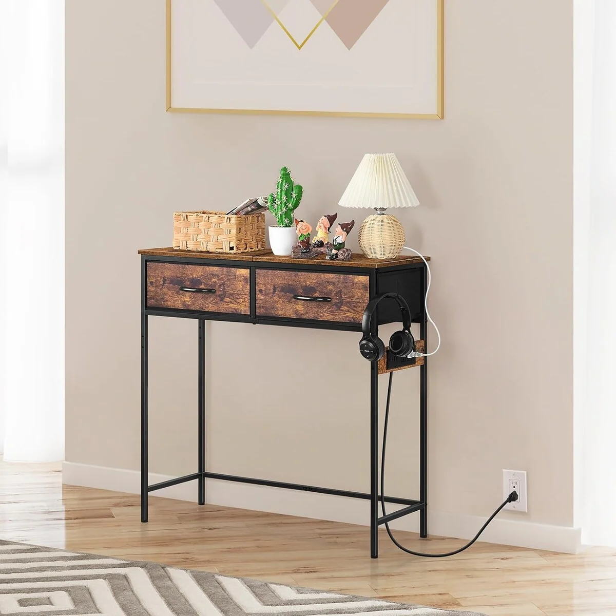 Console Table with Fabric Drawers Charging Station