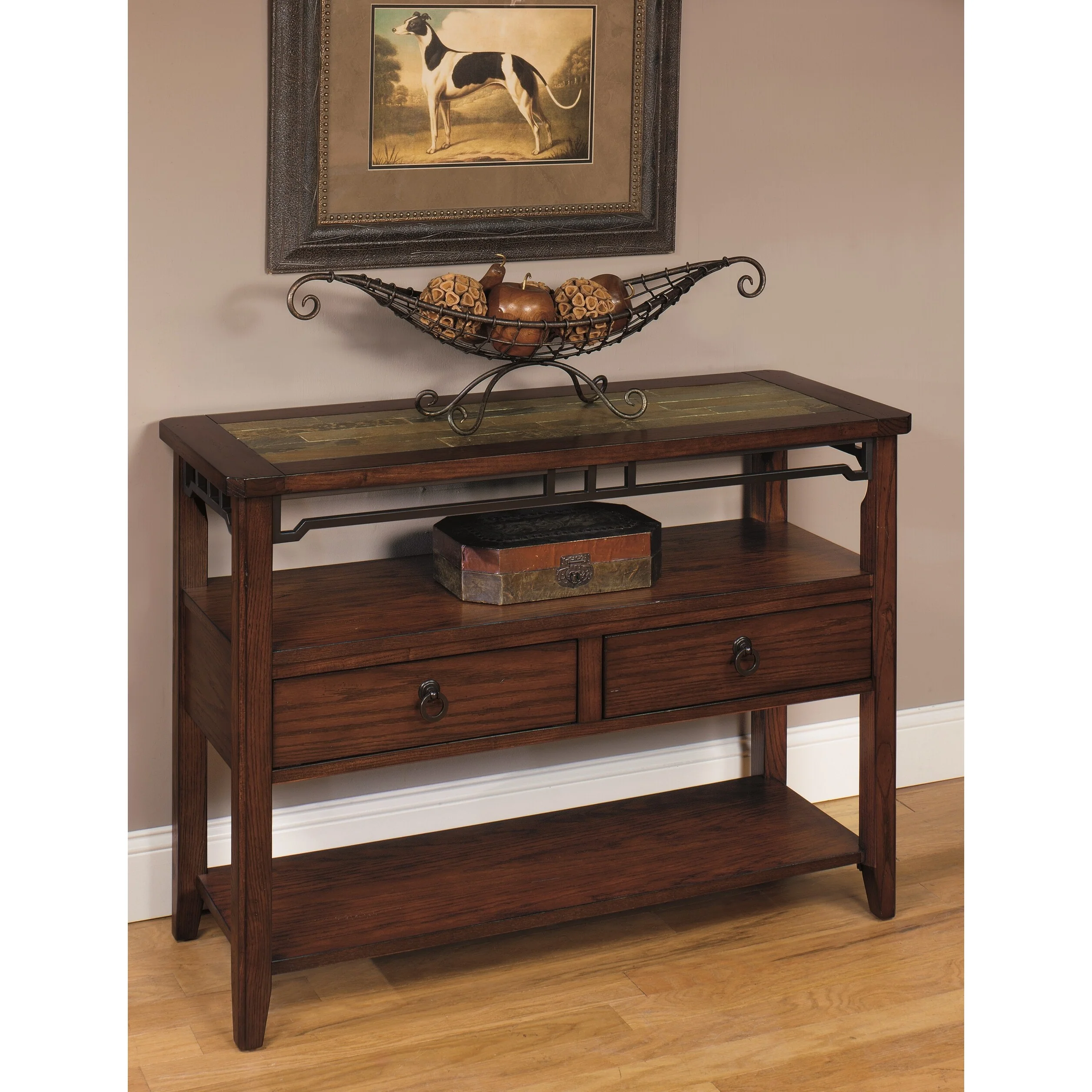 Gracewood Hollow Wood and Slate Sofa/ Media Console Table
