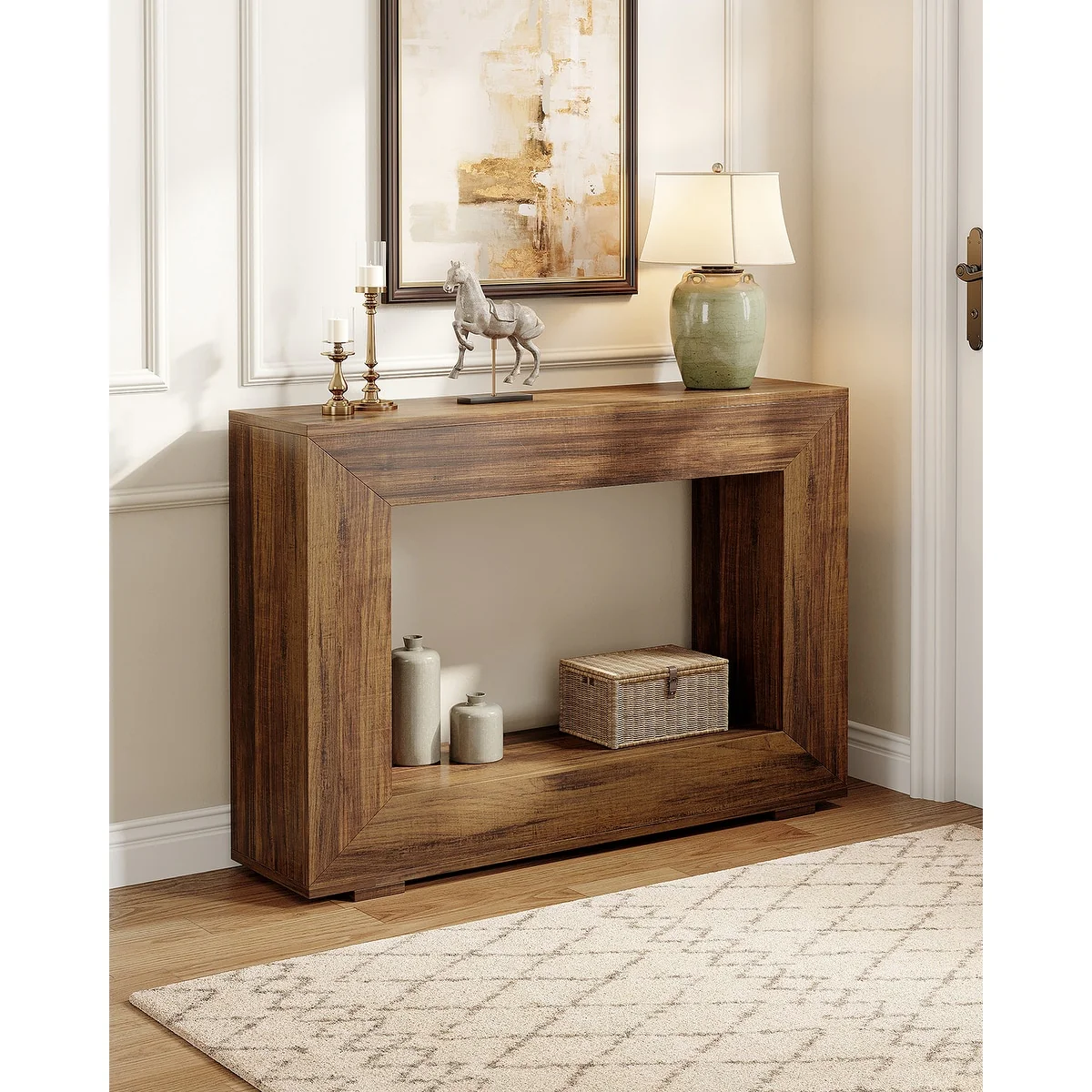 55 Inches Farmhouse Entryway Console Table with Storage