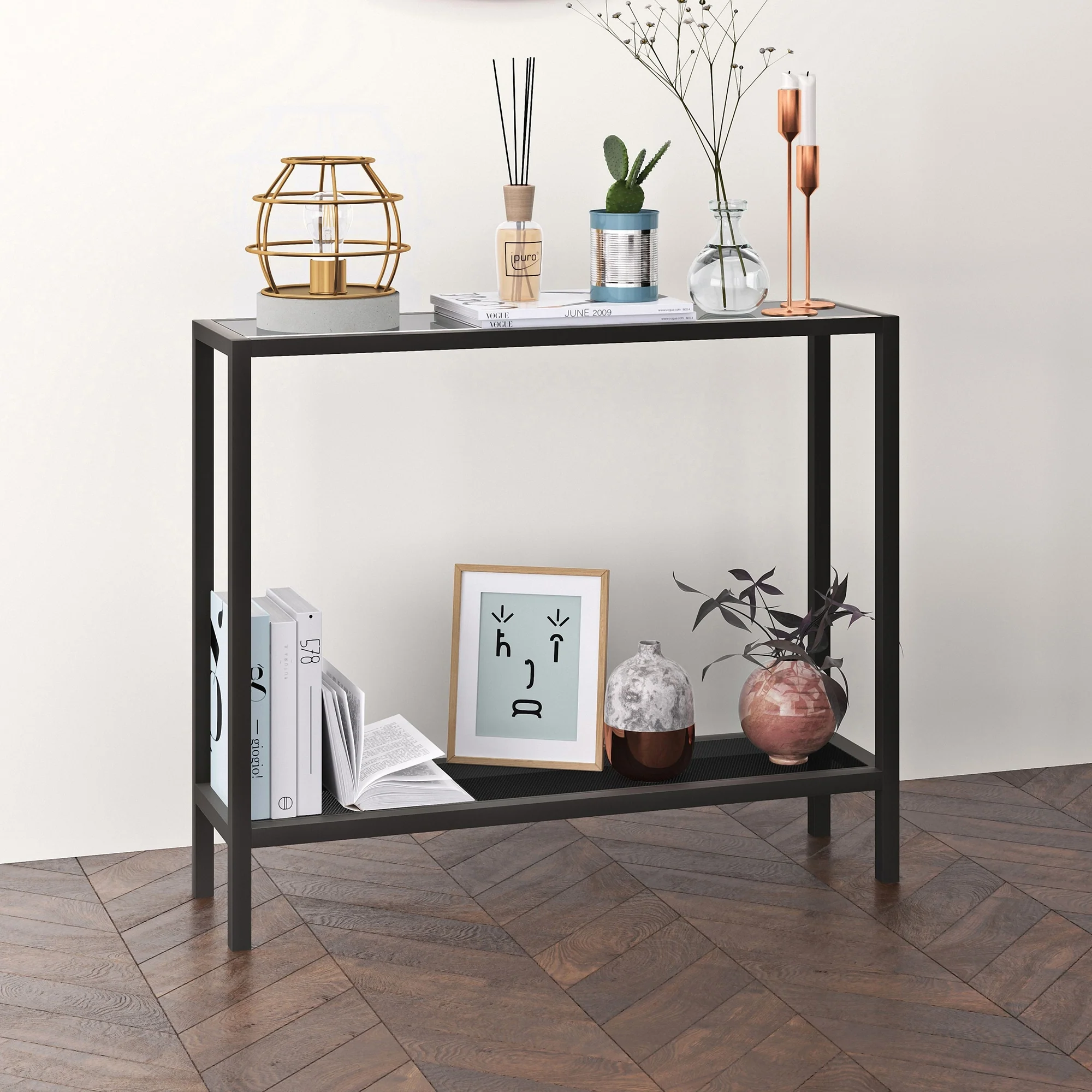 Ricardo Rectangular Console Table with Metal Shelves
