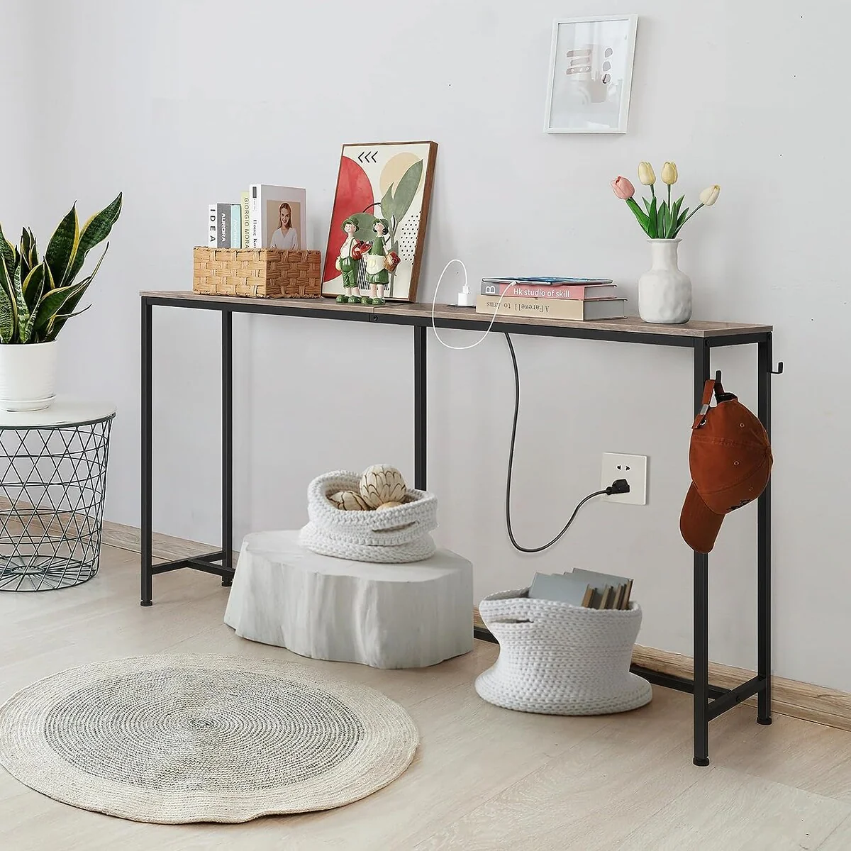 Solid Wood Sofa Table Narrow Long for Living Room Entryway