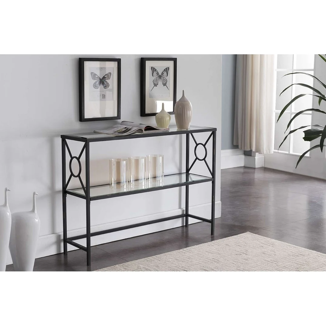 Black Metal Entryway Console Sofa Table with Glass Shelf