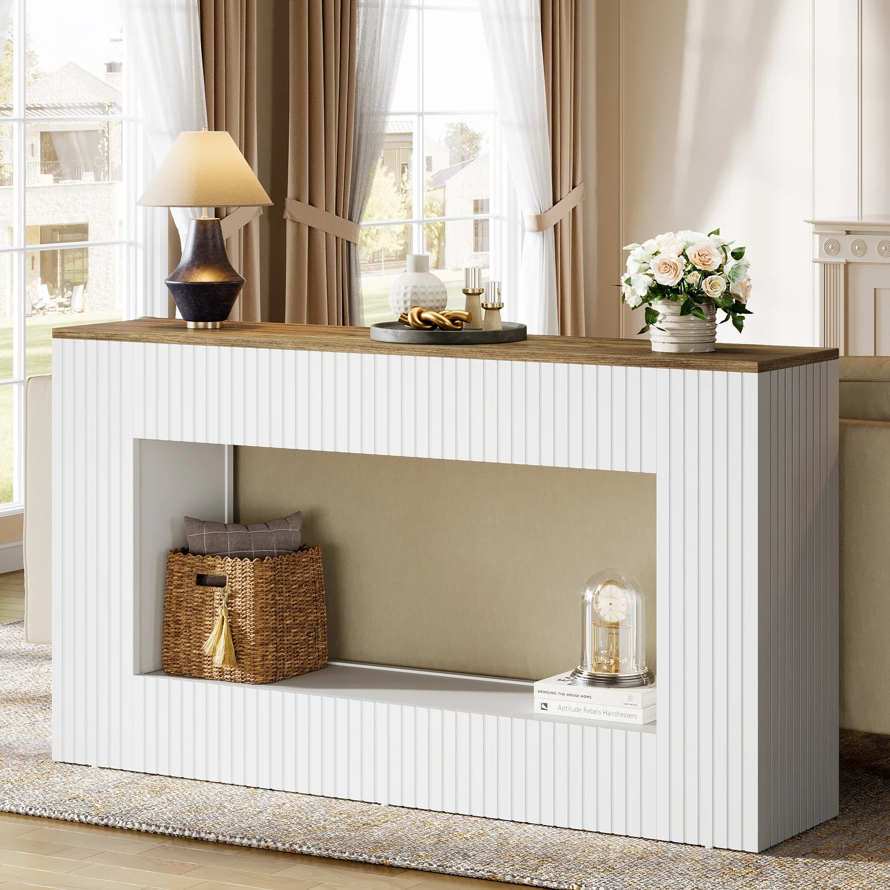 2 Tier Modern Console Table, 55'' Entryway Table with Storage
