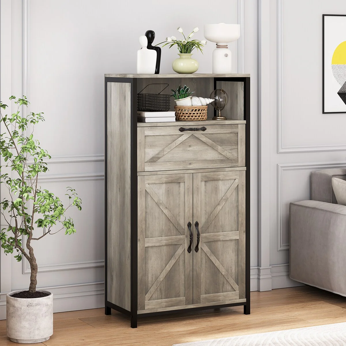 2-in-1 Cat Litter Box Enclosure with with 3 Shelves and Door