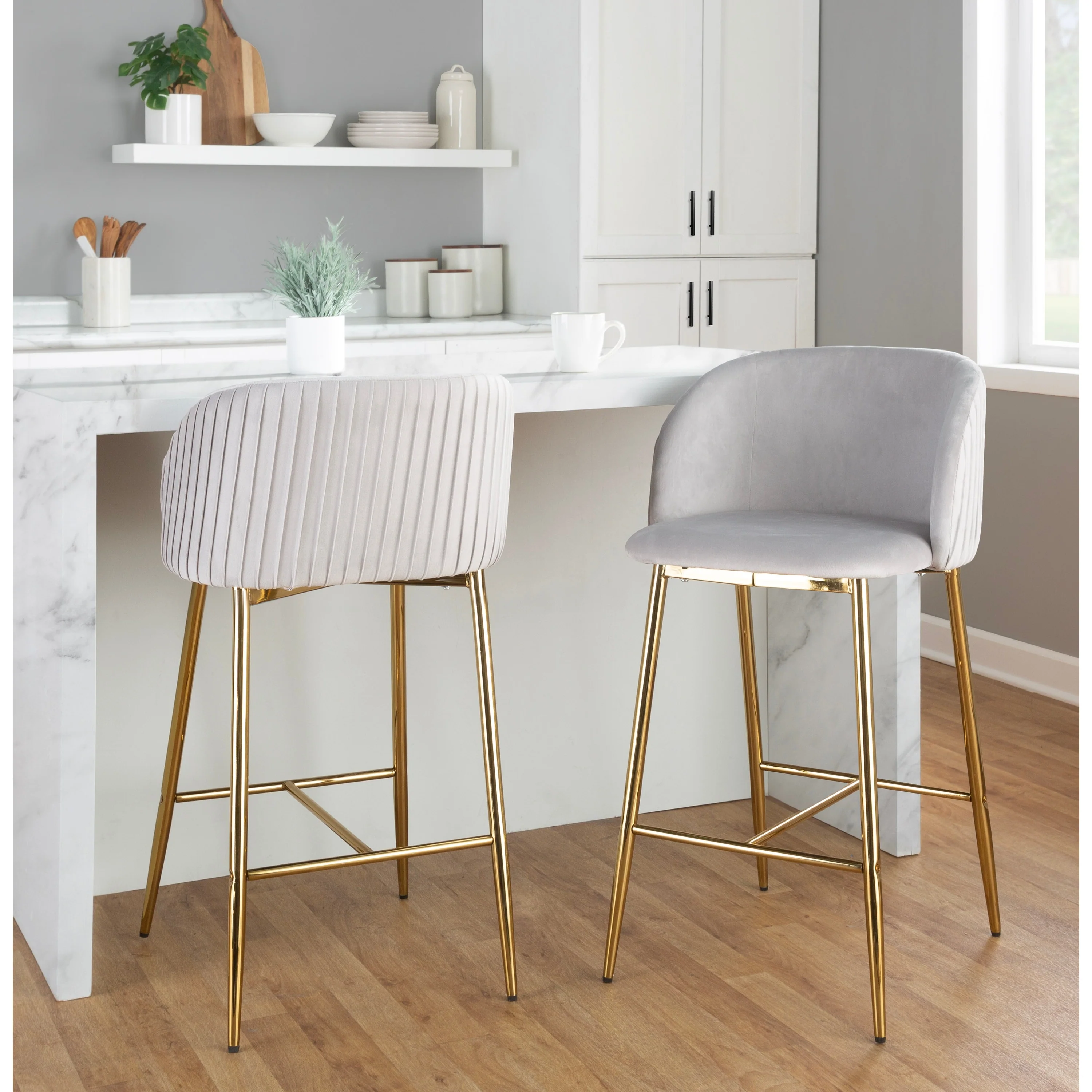 Silver Orchid Pleated Fixed-Height Counter Stool - Set of 2