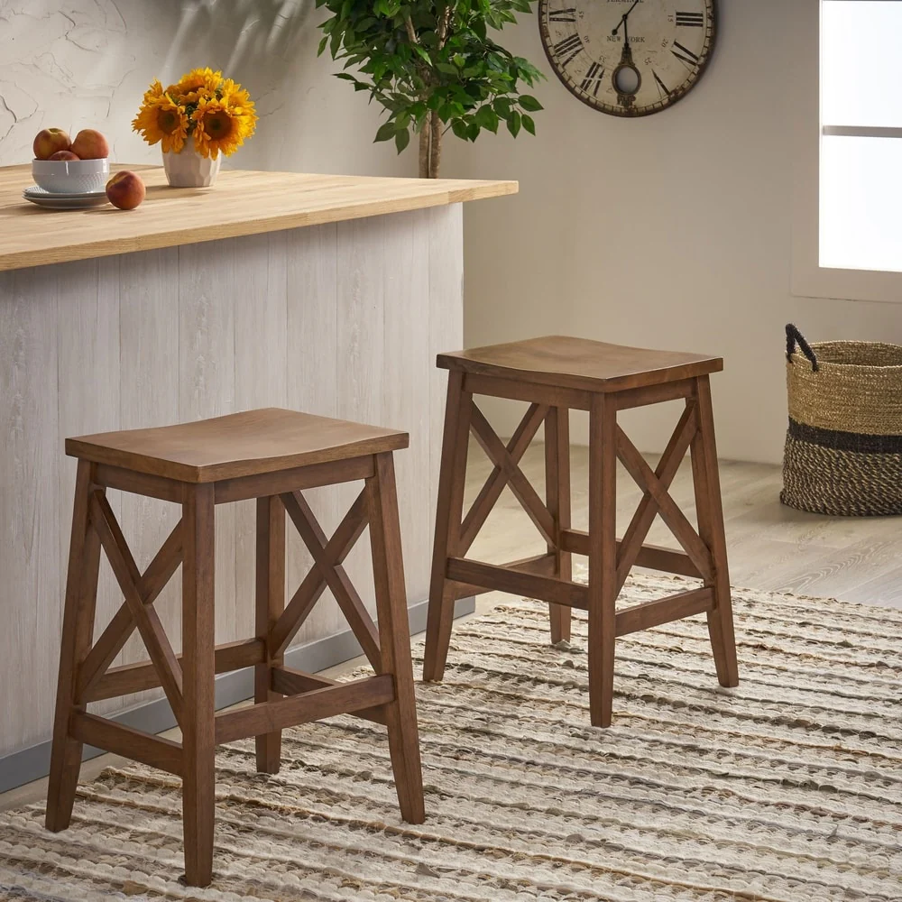 Set of 2 Amie Brown Backless Bar Stool with Gunmetal Grey Frame