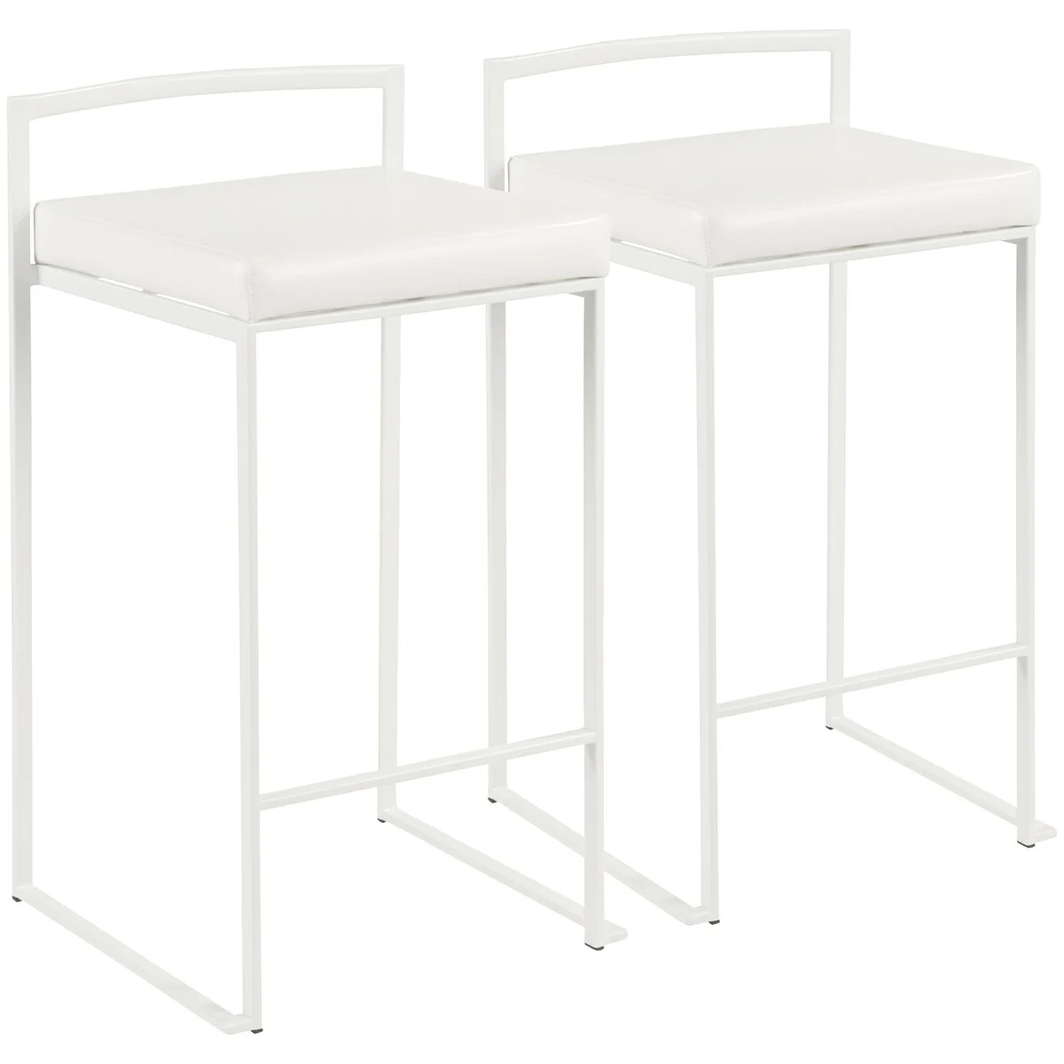 Set of 2 White Faux Leather Stacker Counter Stool - 31