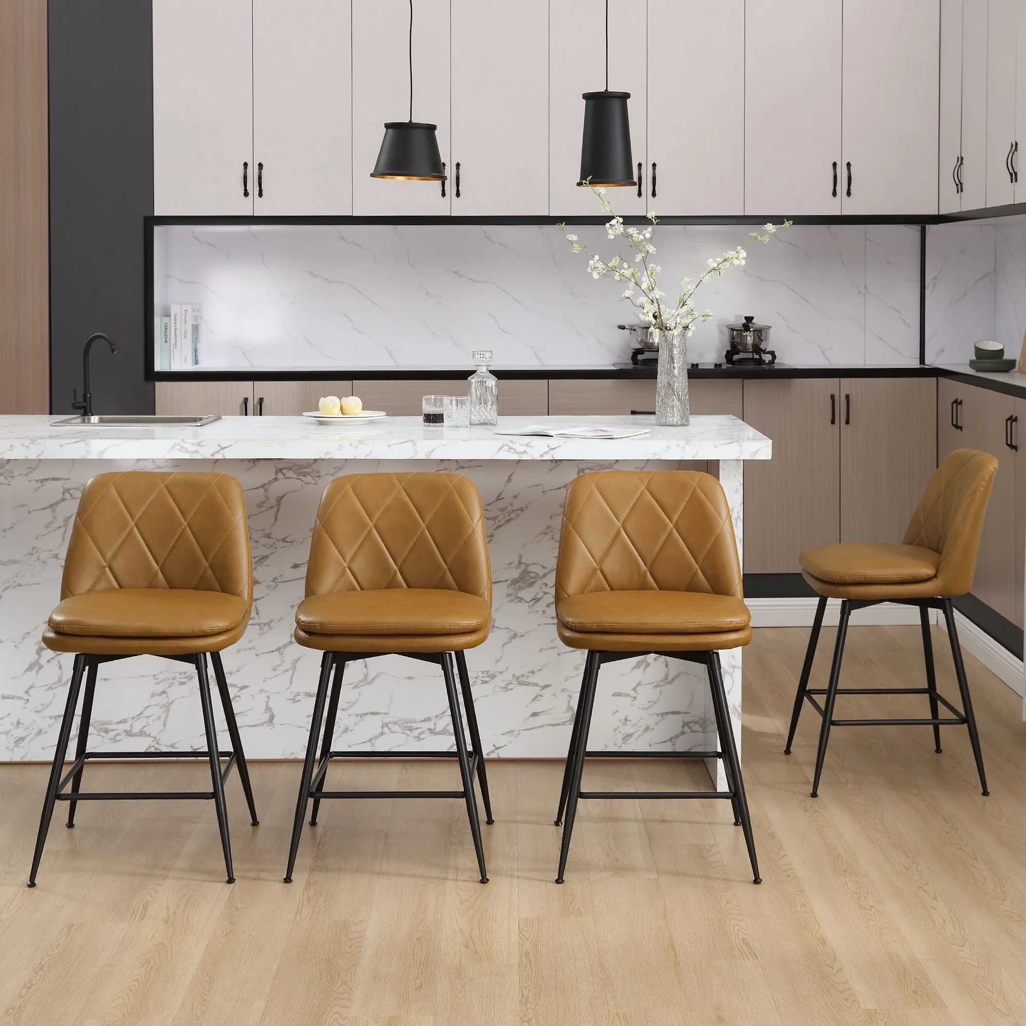 Mid-Century Modern Swivel 2-Piece Bar Stool Set