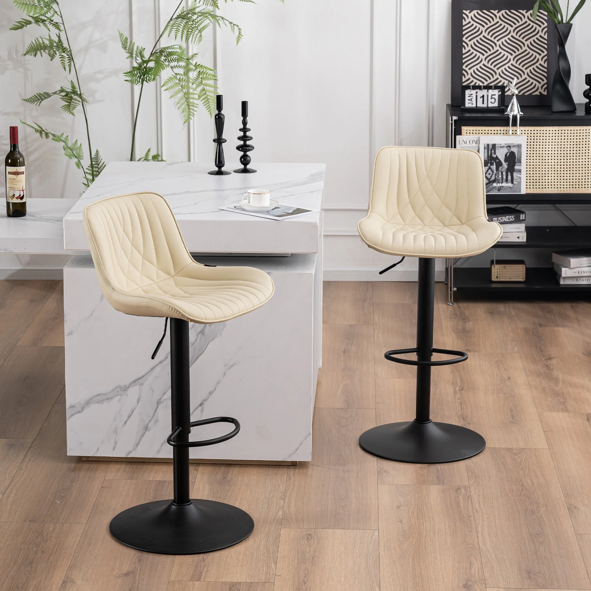 Adjustable Bar Stools Set of 2, Faux Leather Swivel Bar Chairs