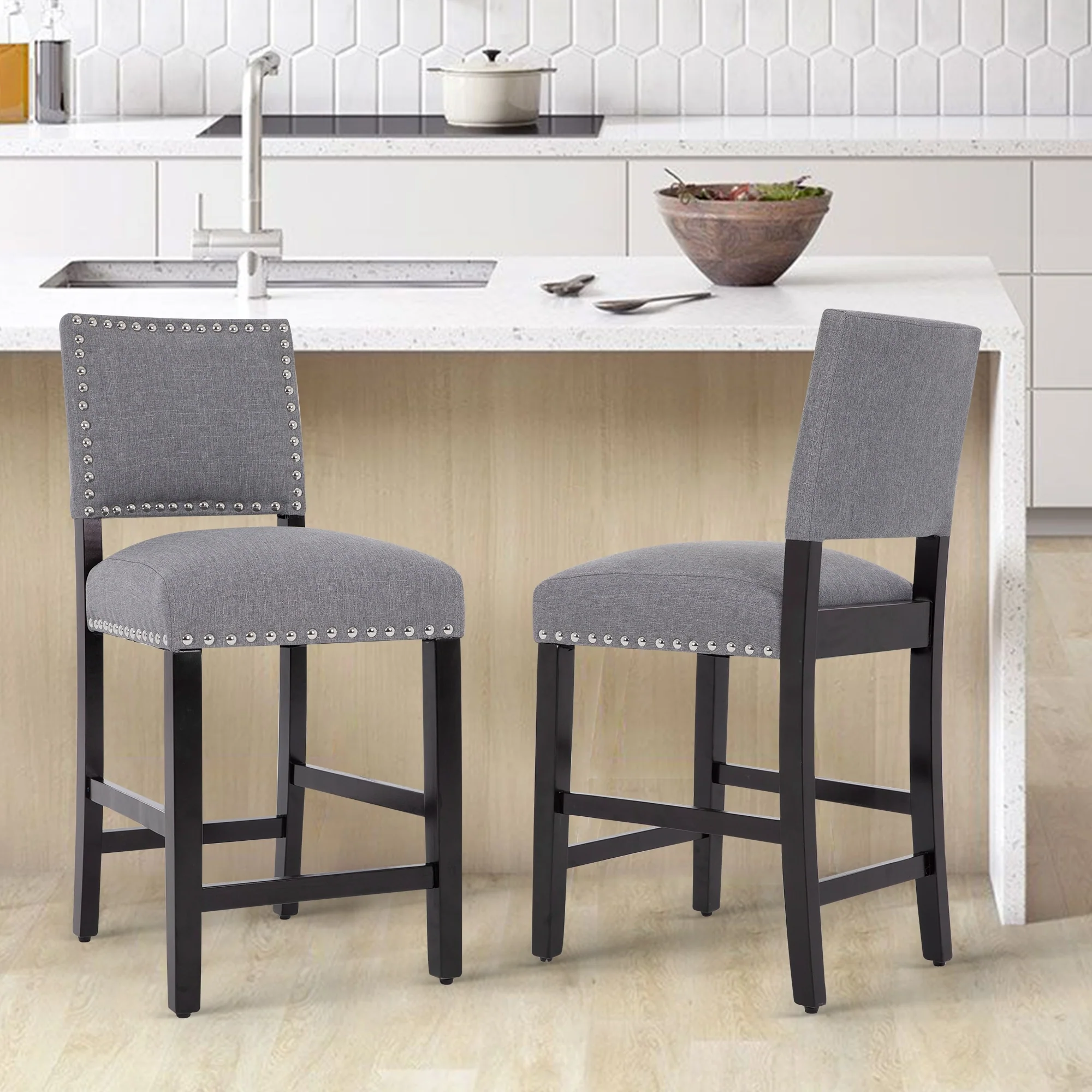 Florencia Modern Fabric and Wood 2-Piece Counter Stool Set