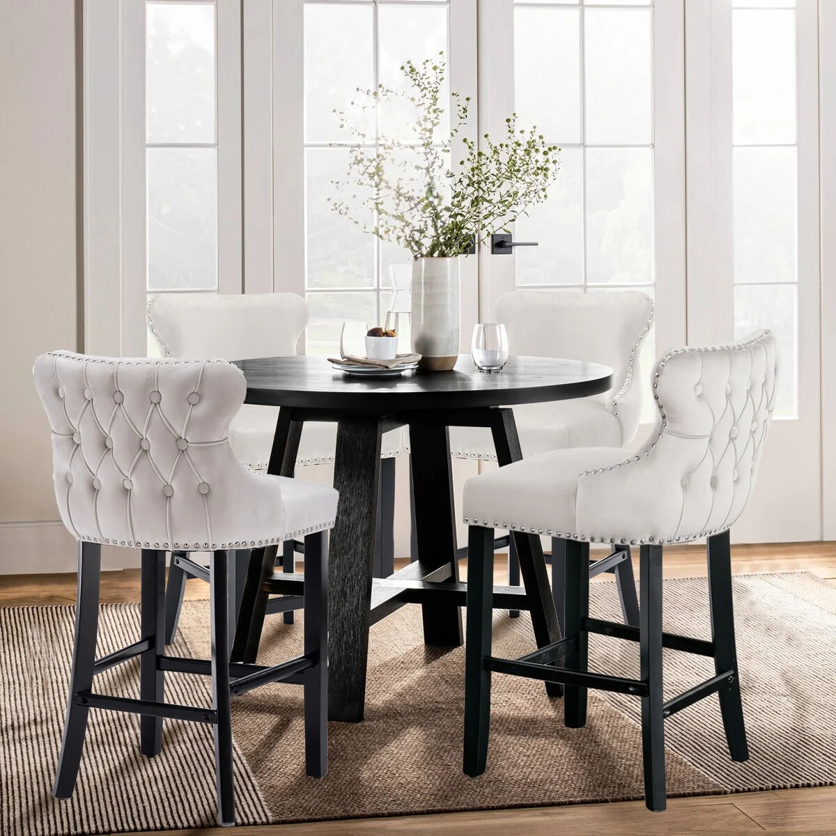 Counter Height Bar Stools Velvet Upholstered Barstools Set of 4
