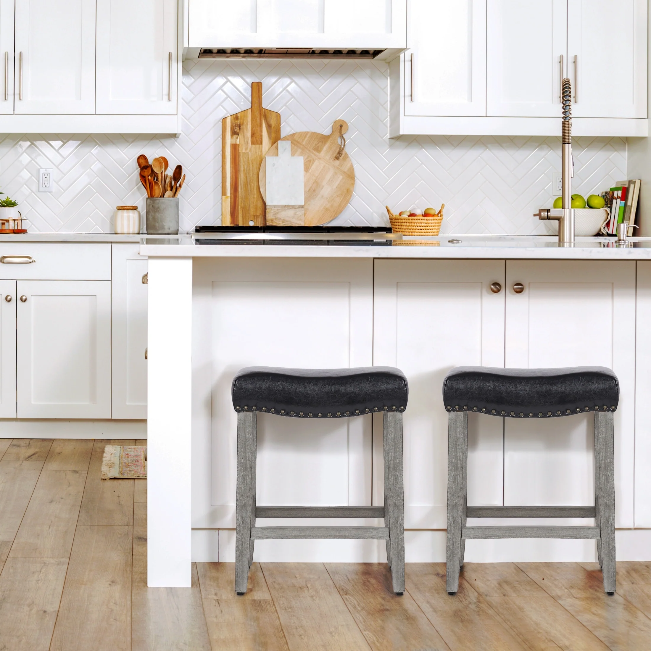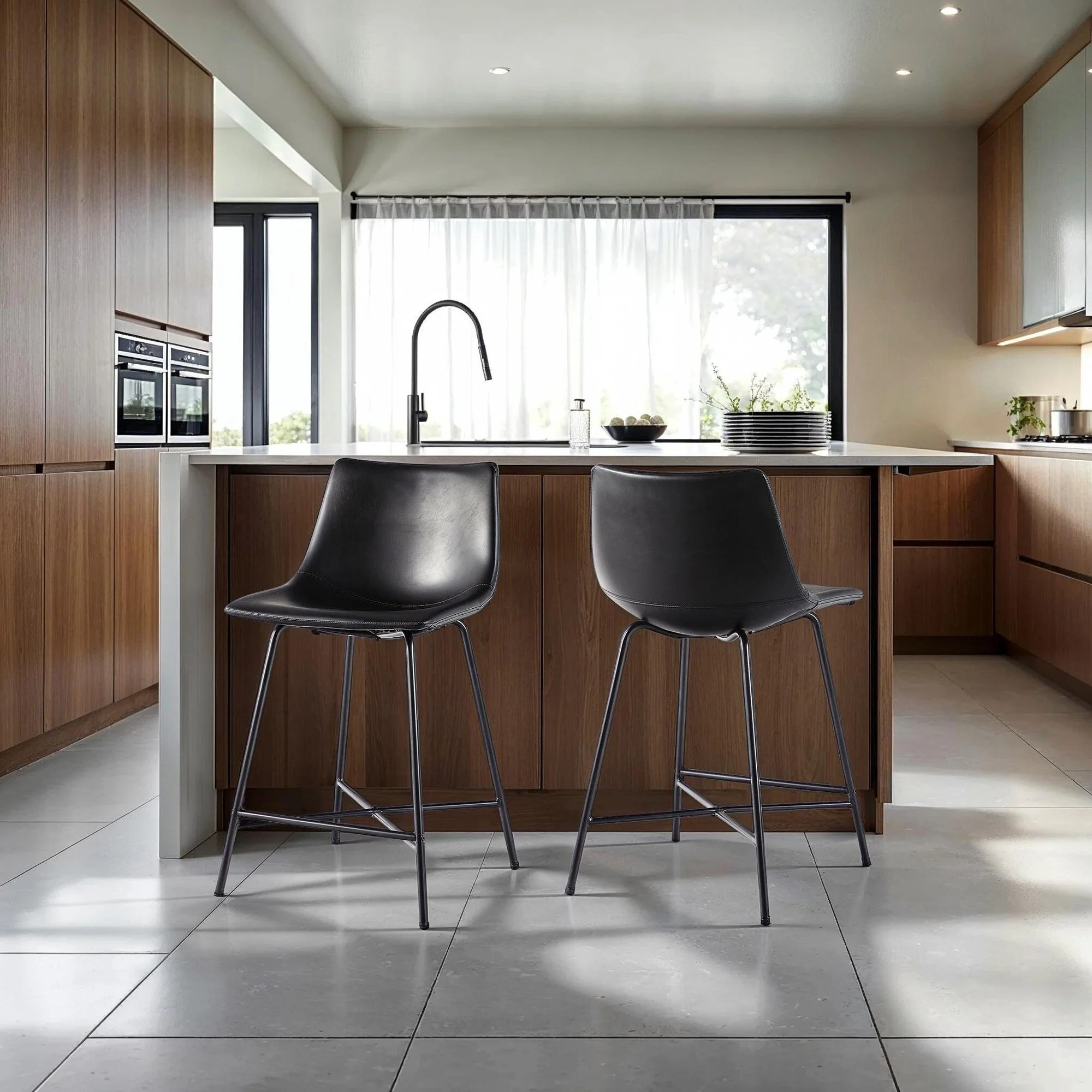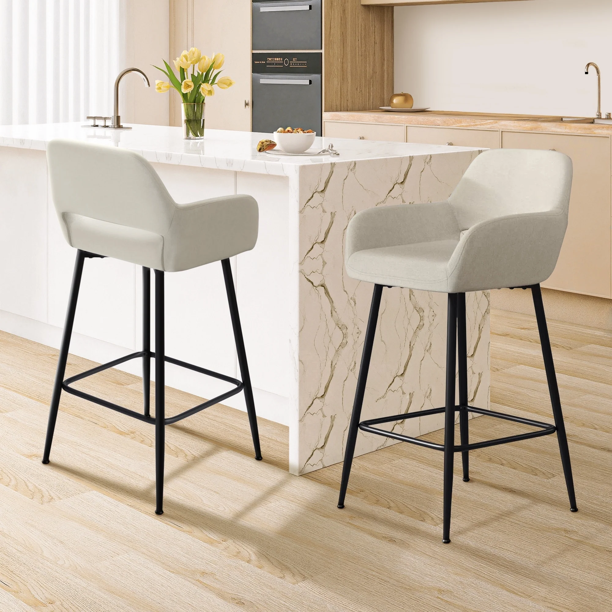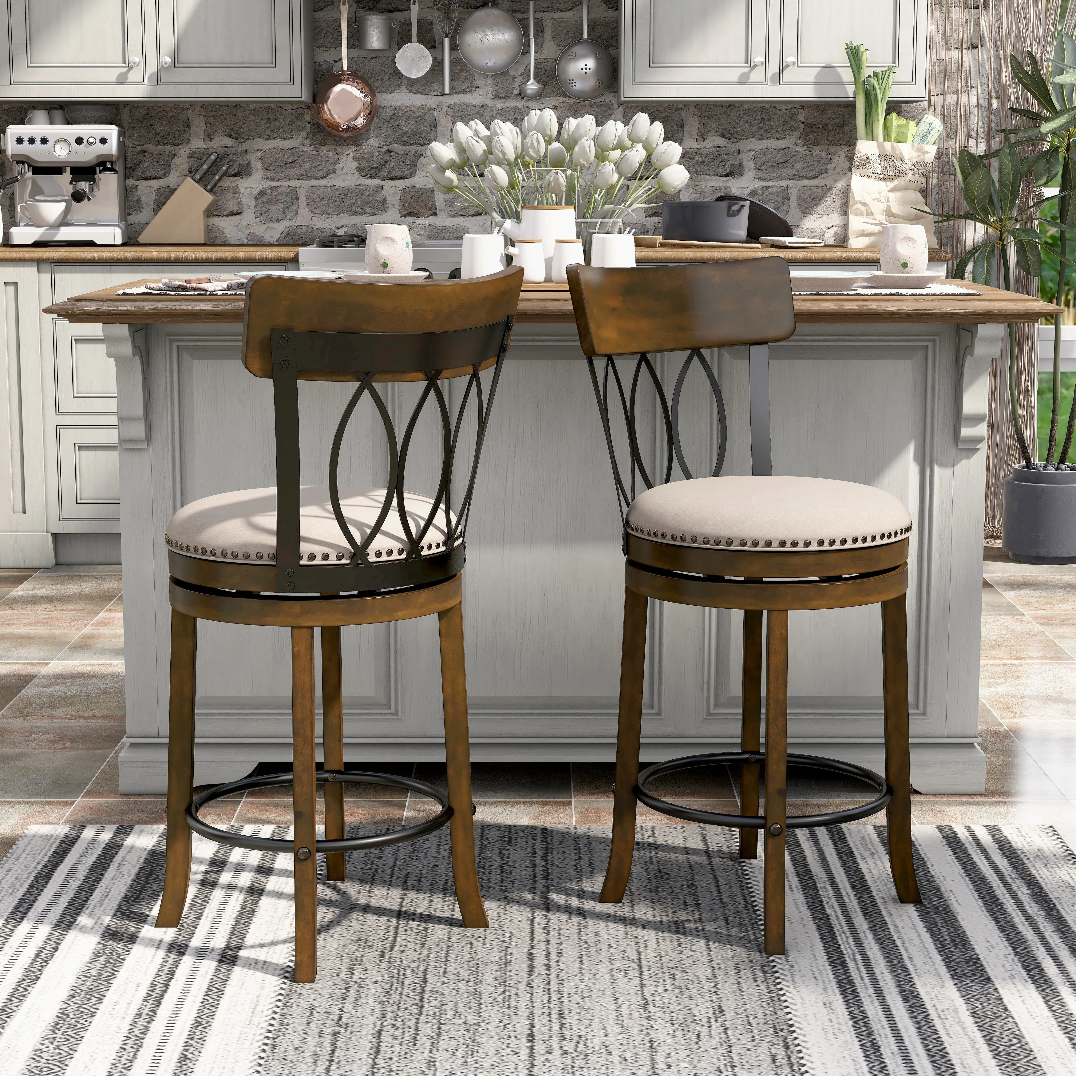 Bar Stools Set of 4, Kitchen Bar Stools with Footrest