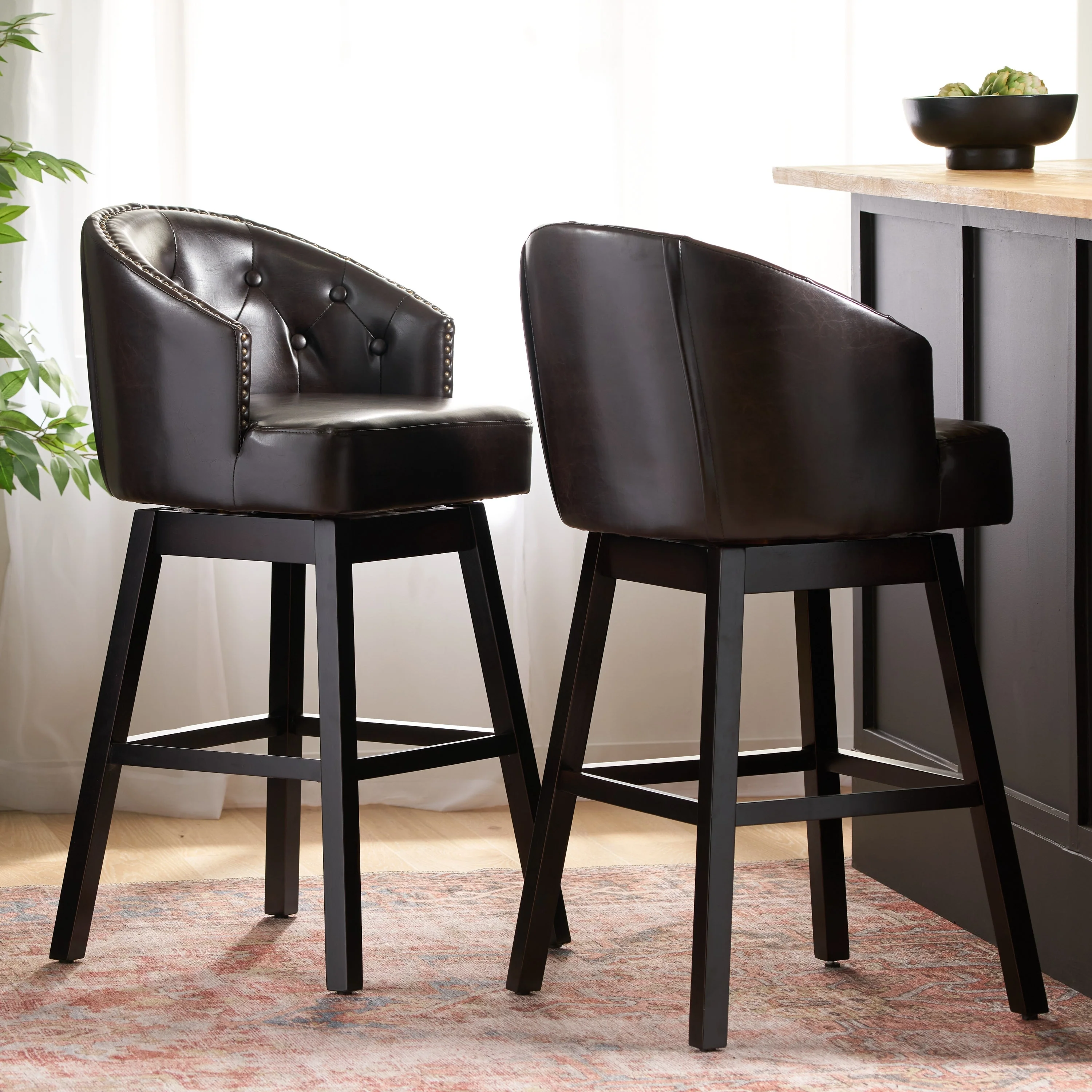 Linon Khalifah Brown Seat Metal Swivel Counter Stool