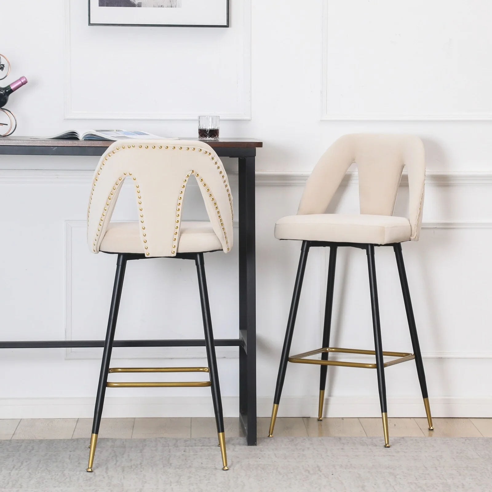 Velvet Adjustable Swivel Counter Height Barstools Set of 2