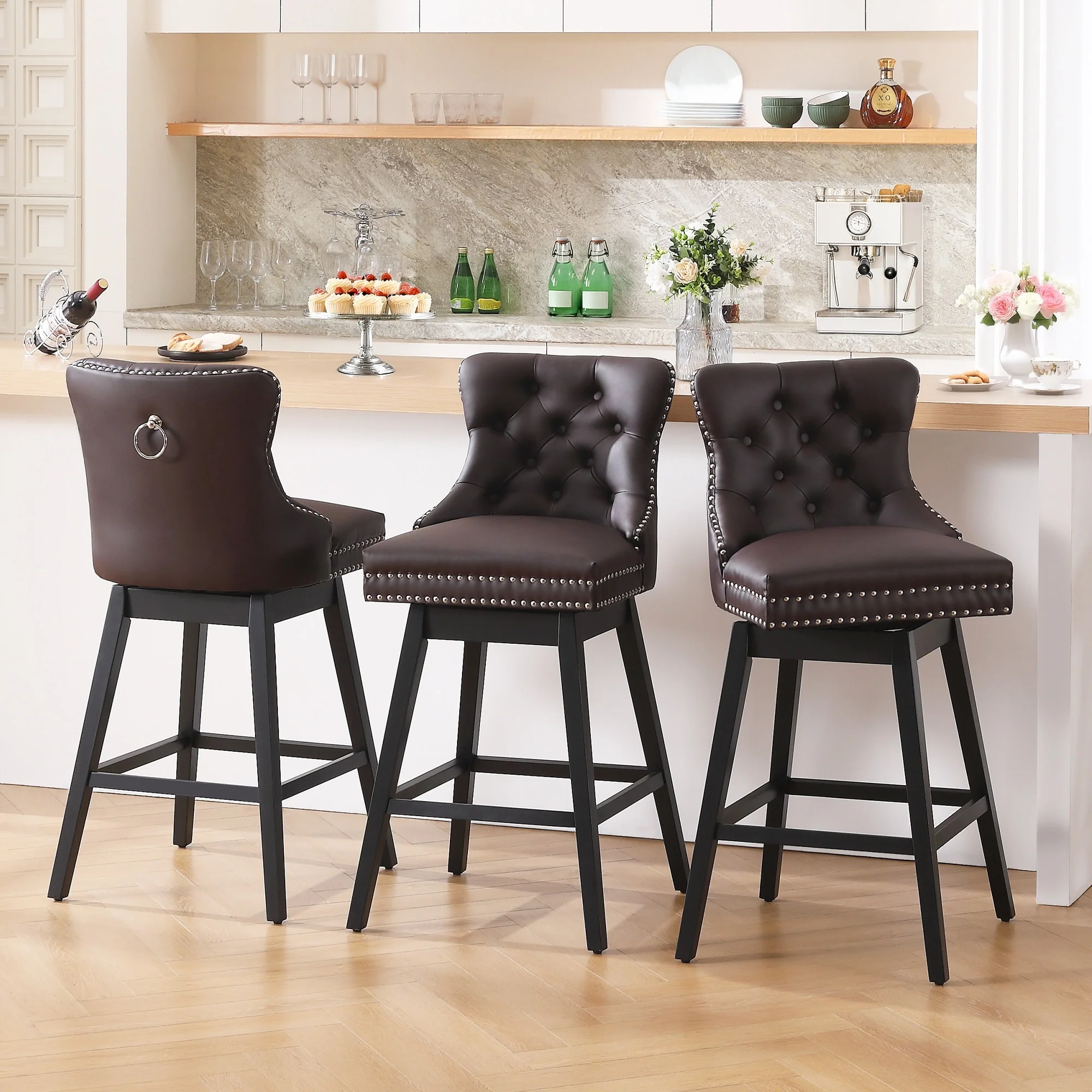 Faux Leather Upholstered Swivel Bar Stools, Counter Stool