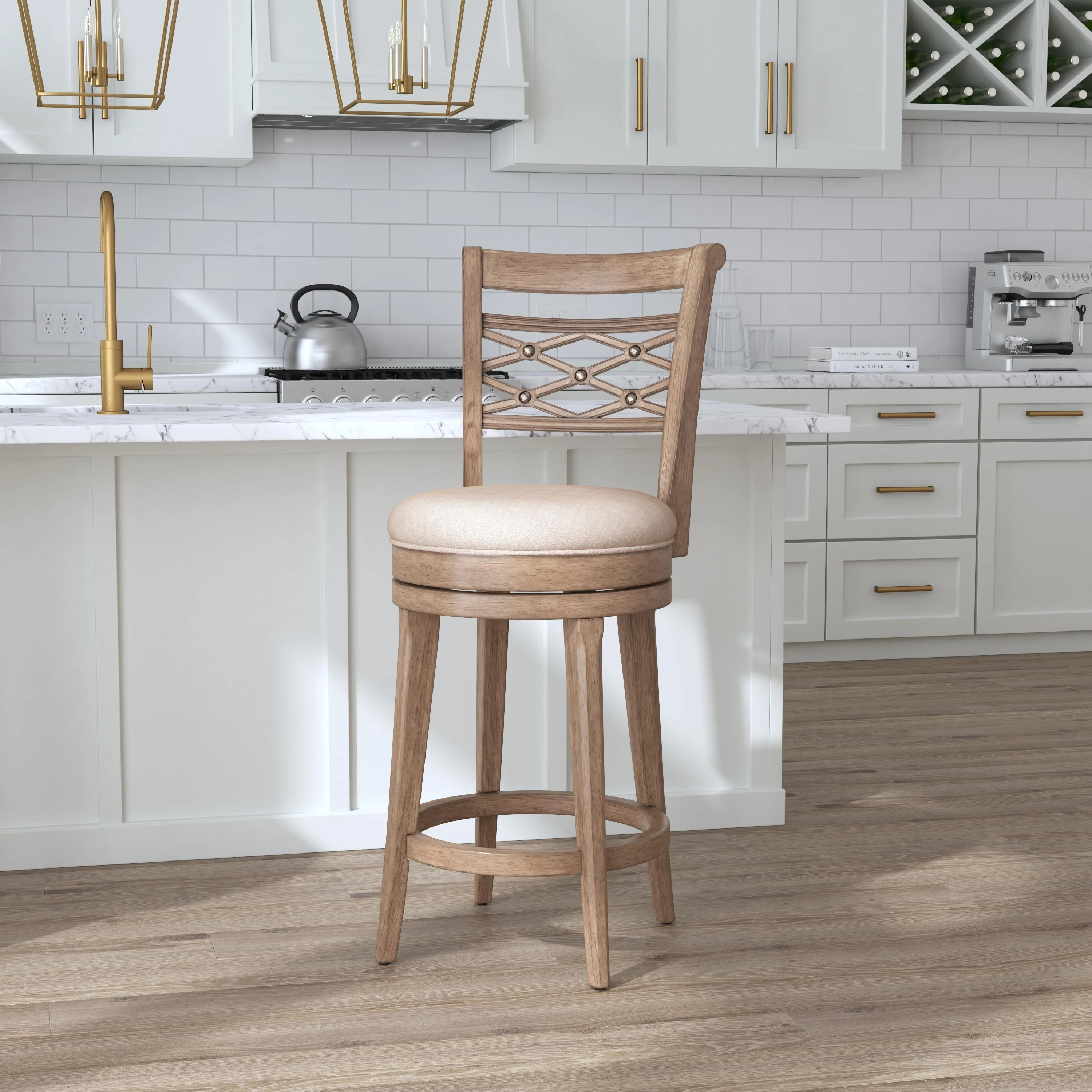 Alec Upholstered Wood Counter or Bar Swivel Stool
