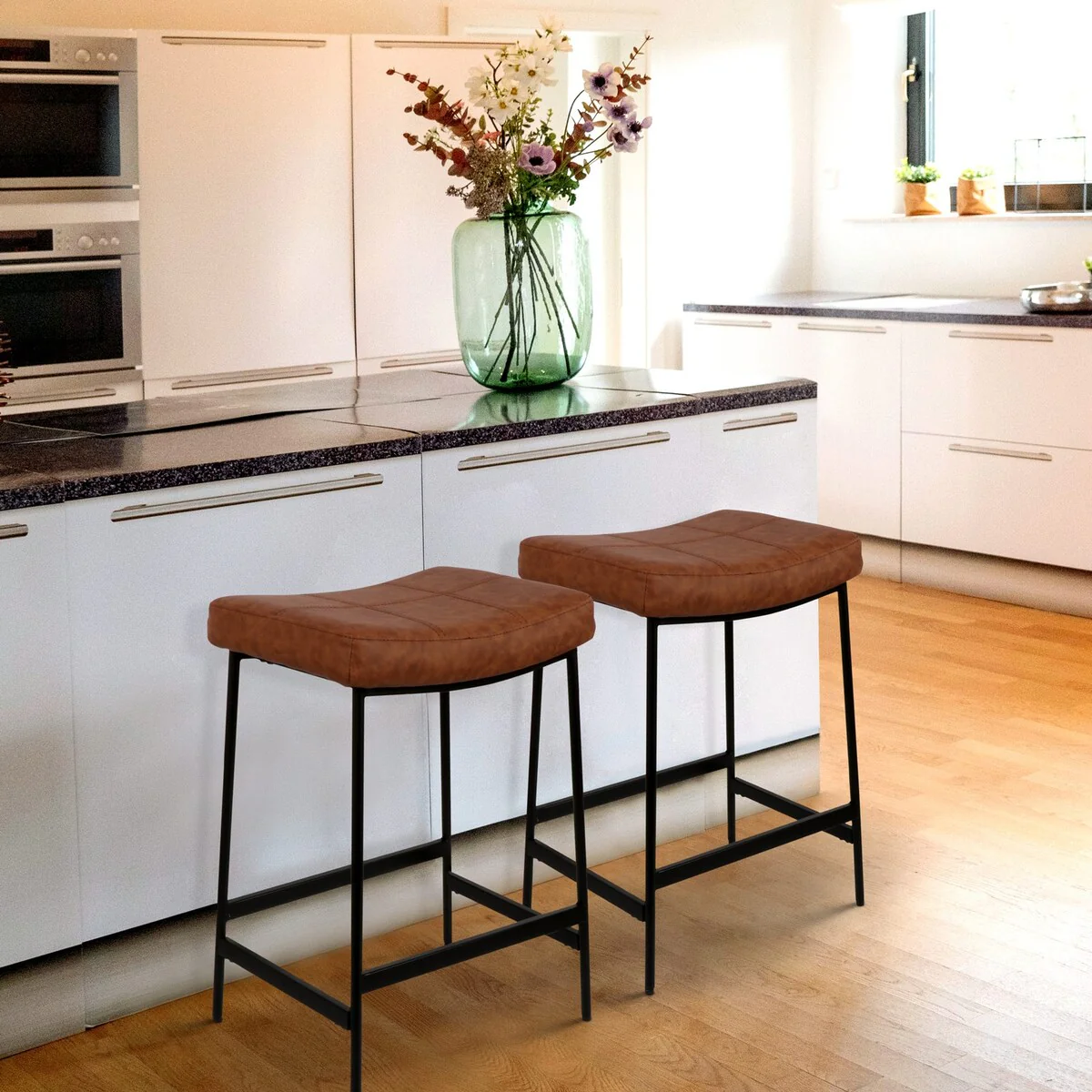 Upholstered Counter Height Modern Dining Stools (Set of 2)