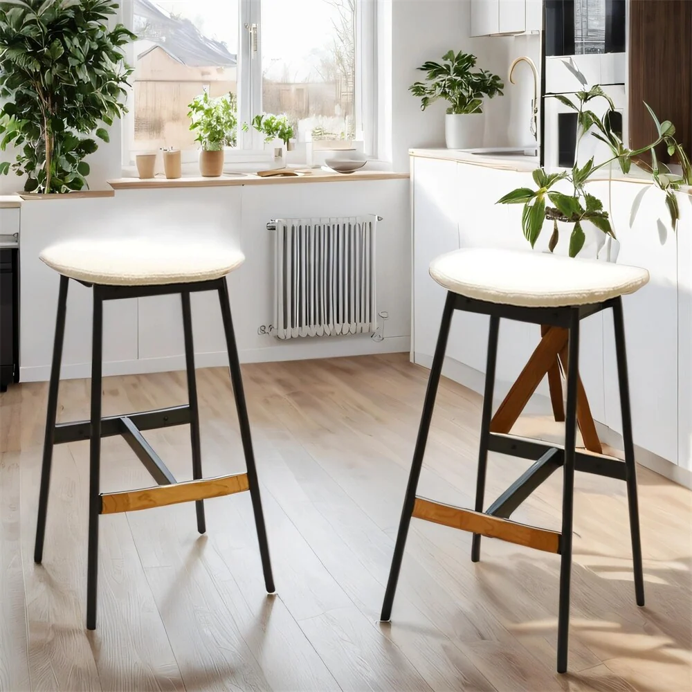 Backless Fabric Upholstered Counter Height Bar Stools,Set of 2