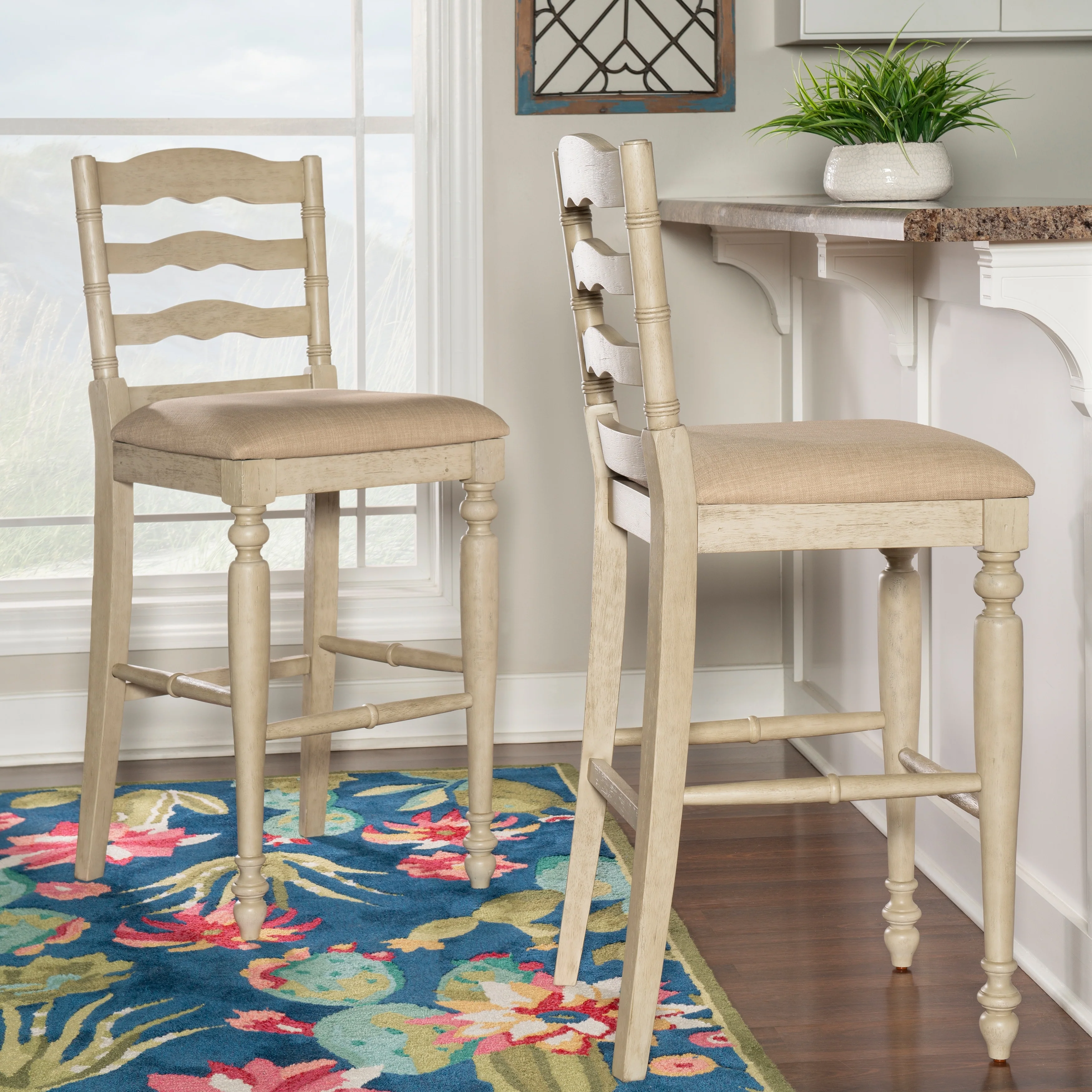Linon Willamette Rustic Striped Cream Bar Stool