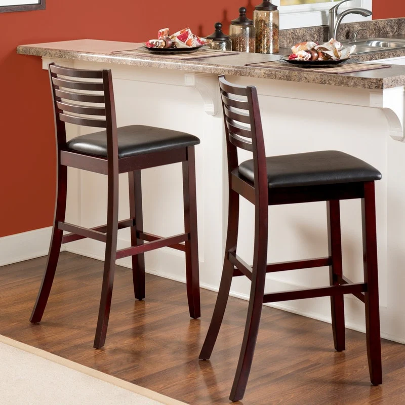Linon Pitchfork Espresso Ladder Back Bar Stool