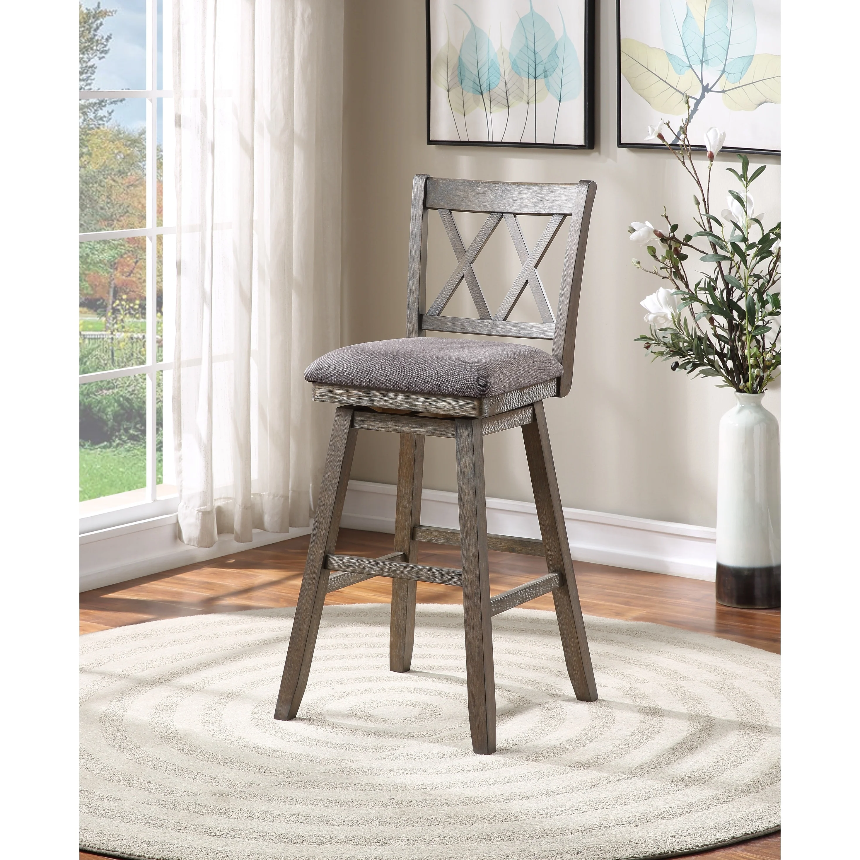 Brookline Wooden Linen Swivel Dining Room Barstool