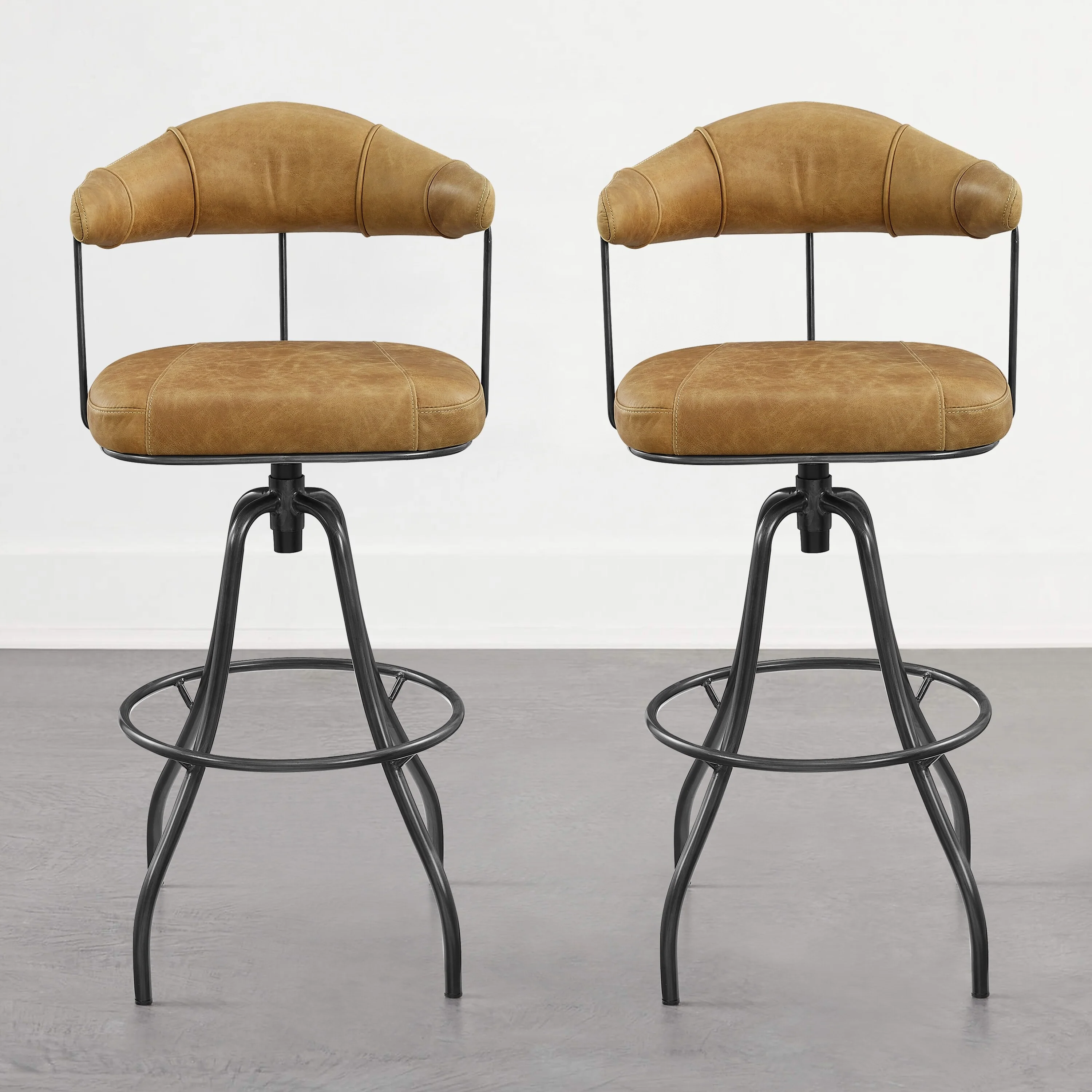 Karter Faux Leather and Wood Adjustable Swivel Bar Stool