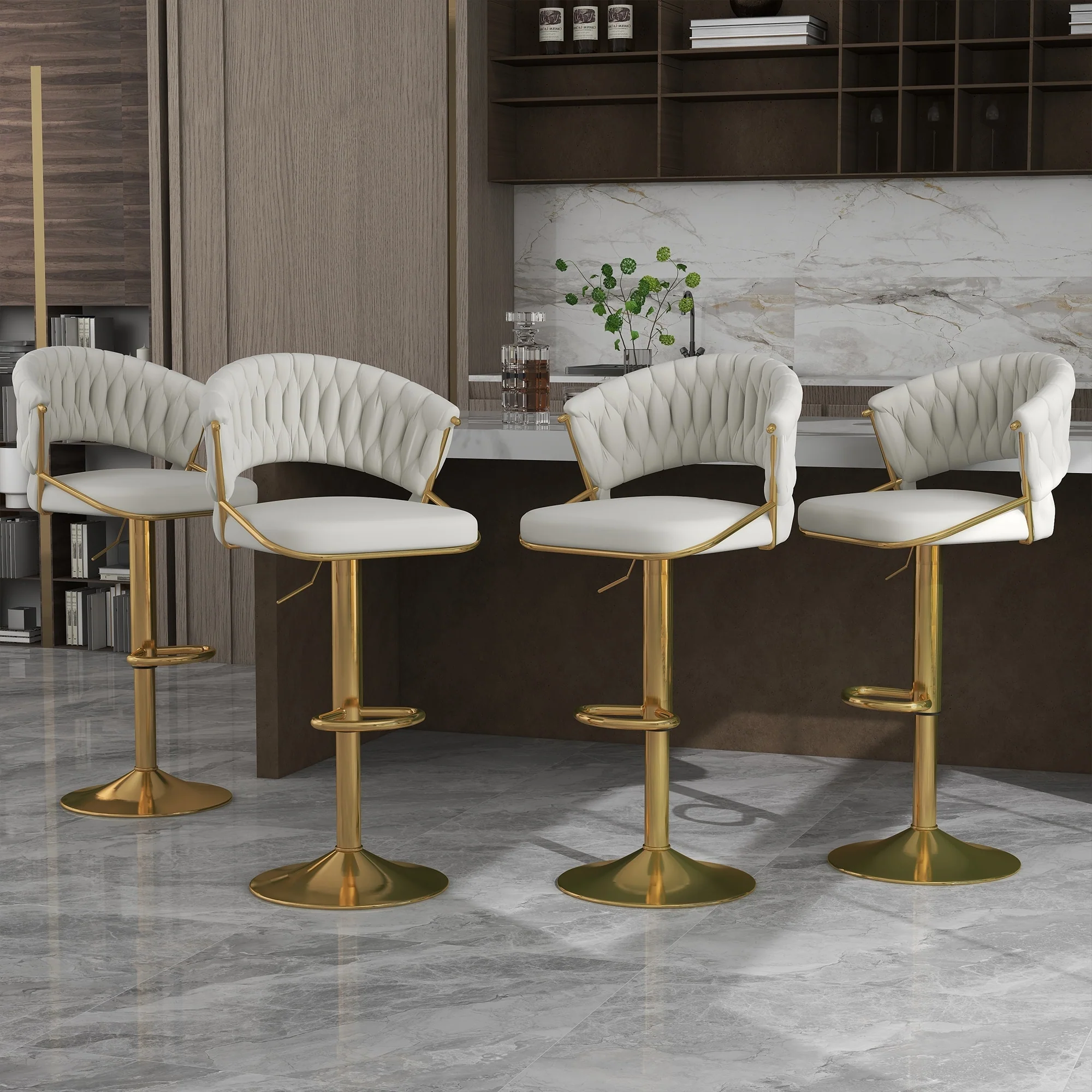 Set of 4 Modern Velvet Adjustable Bar Stools with Backs