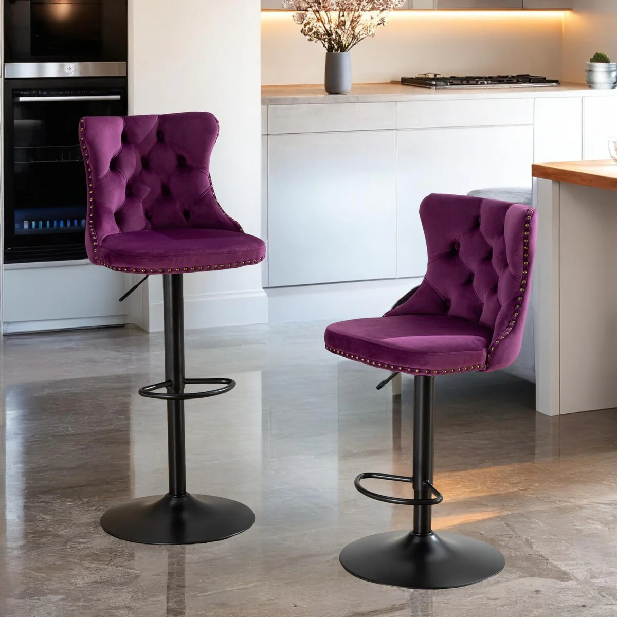 Set of 4 Bar Stool Adjustable Height Swivel Velvet Woven