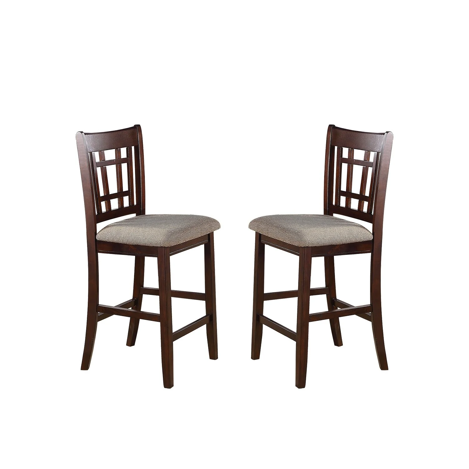Height Chair with Beige Upholstered Seat, Set of 2, Brown