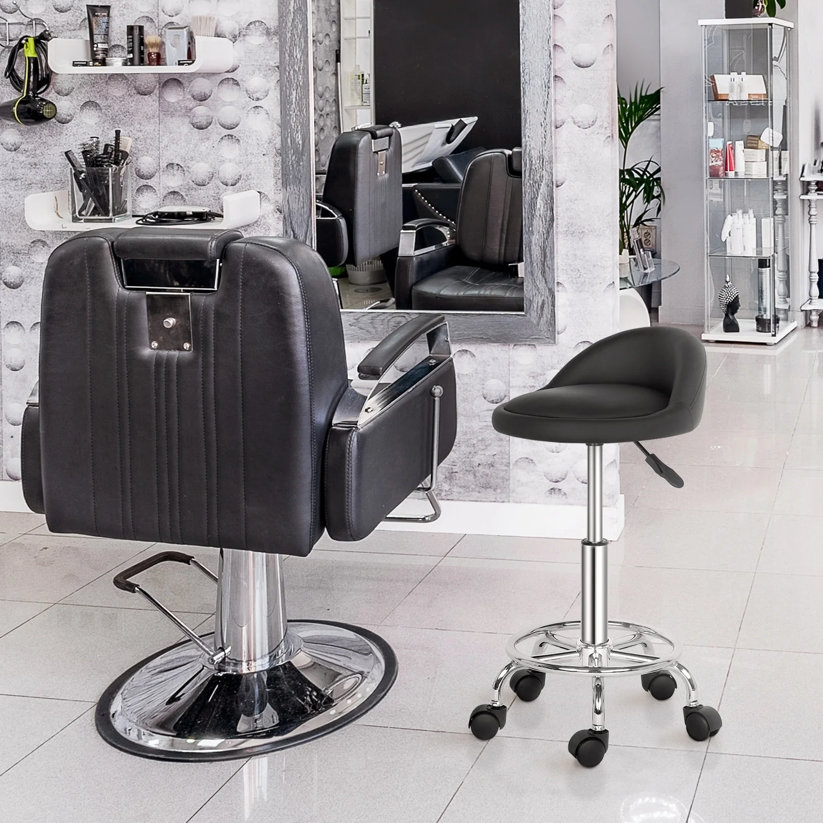 Round Shape Adjustable Salon Stool with Back Black - N/A