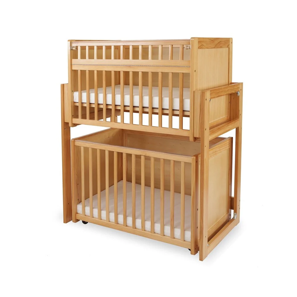 Modular Dual Level Slatted Crib with Caster Support, Brown and Clear