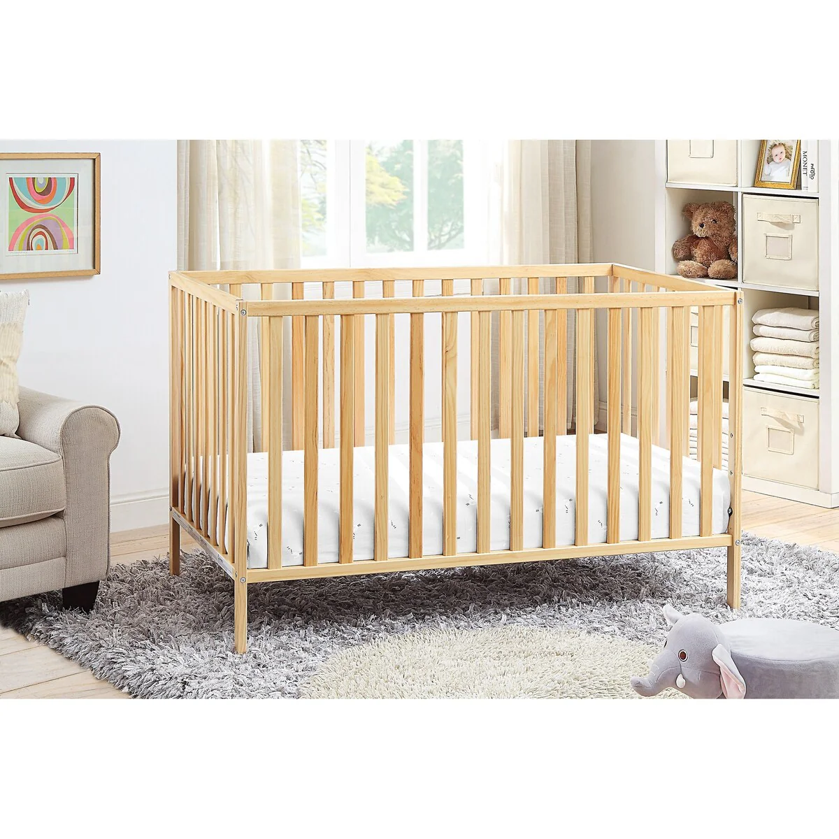 Next Gen Serenity Fixed-Side Compact Mirror Crib - Natural