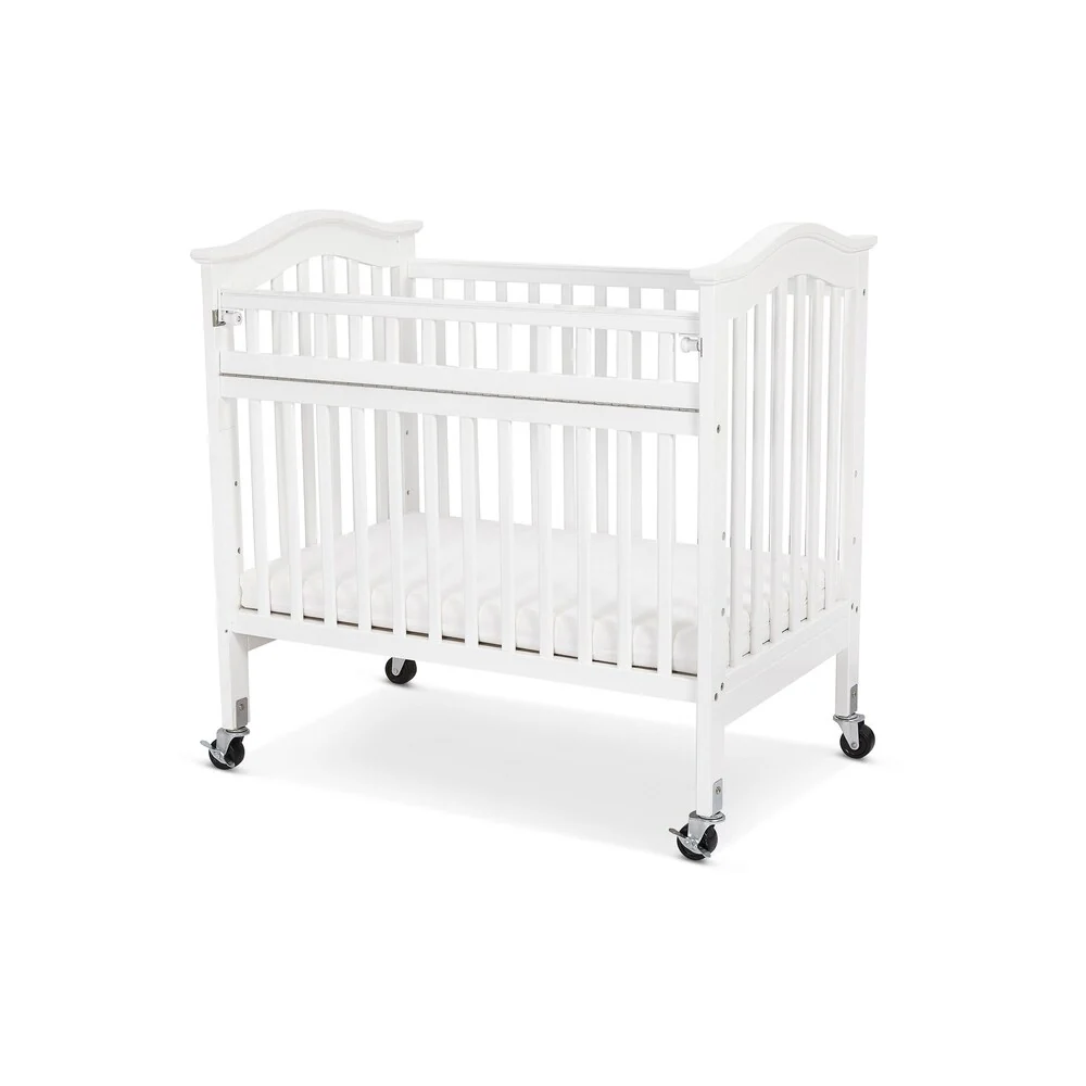 Slatted Wood and Metal Crib with Casters and Safety Gate, White