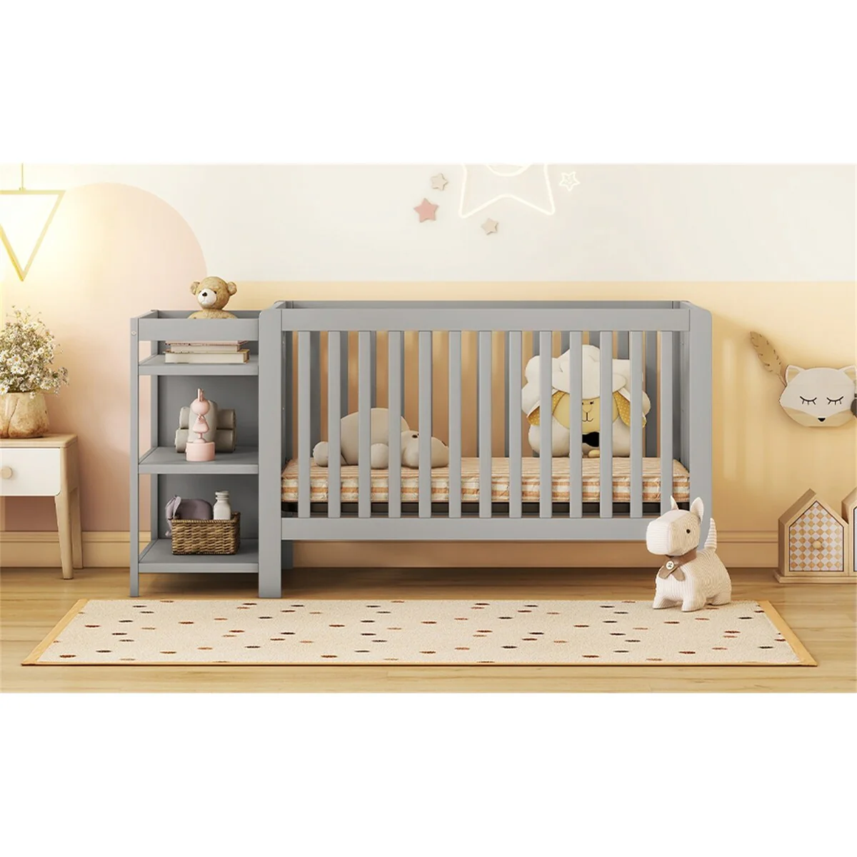 Stylish Design Adjustble Convertible Crib with Changing Table