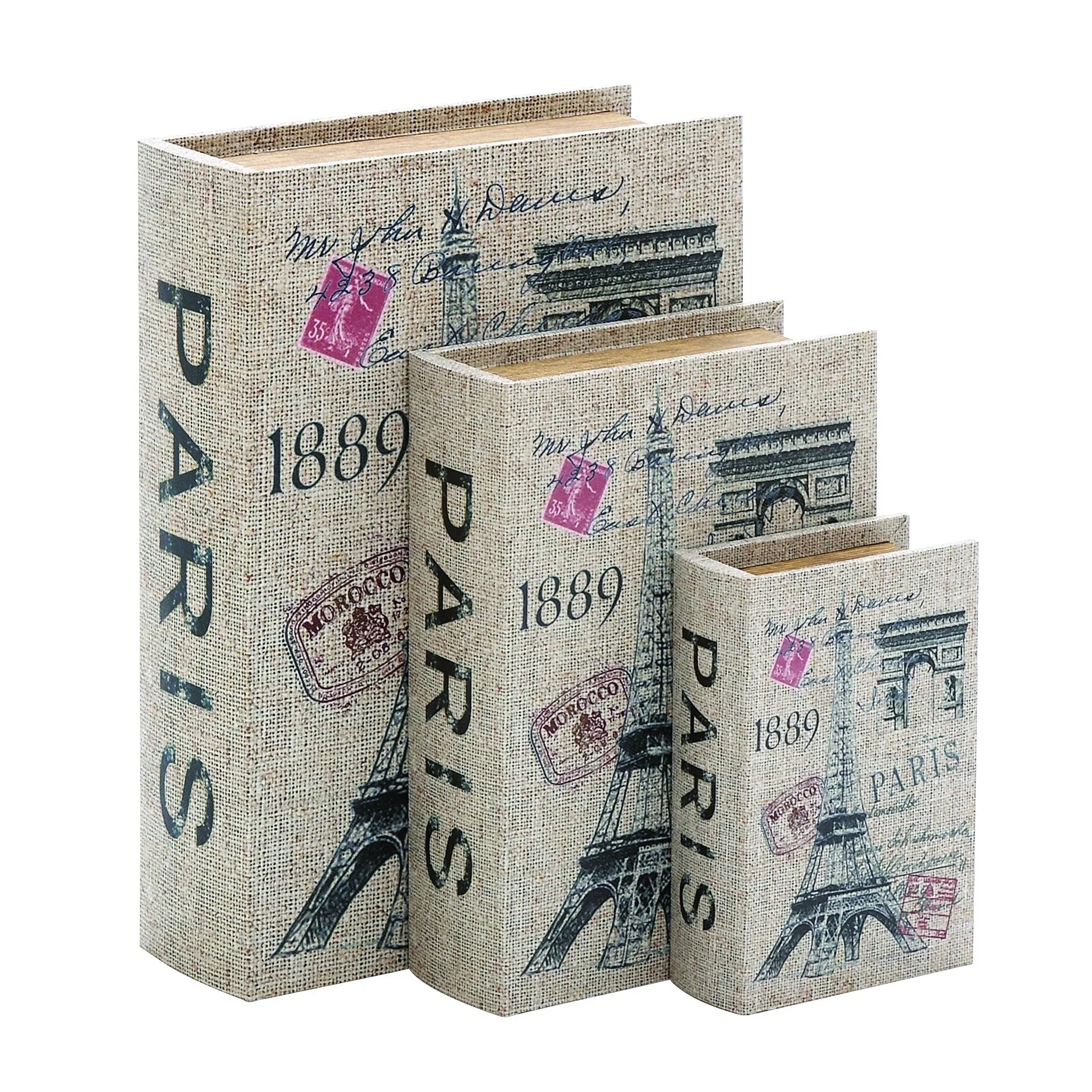 Silver Orchid Holm Wood Canvas 3-piece Book Box