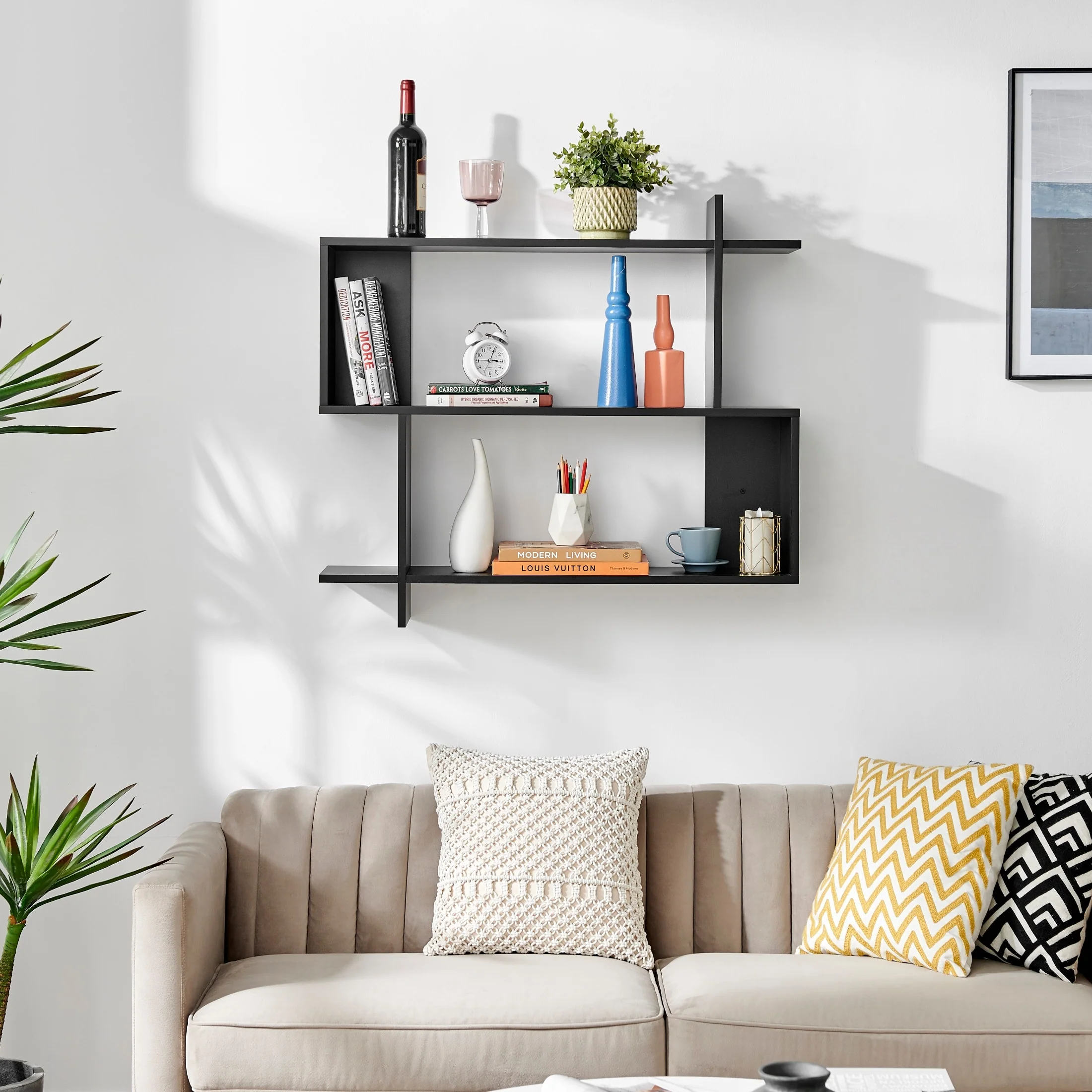 Meridius Black Metal Multi-Tier Wall Mounted Shelving Unit