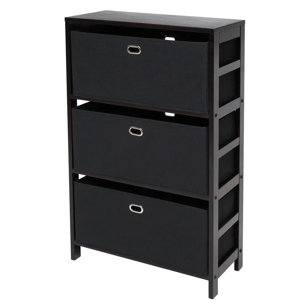 Torino 4-PC Set Storage Shelf w/ Black Fabric Baskets