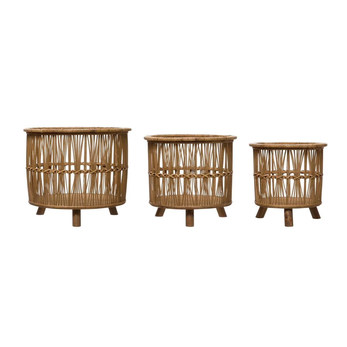 Woven Bamboo Footed Baskets - 15.8L x 15.8W x 13.0H