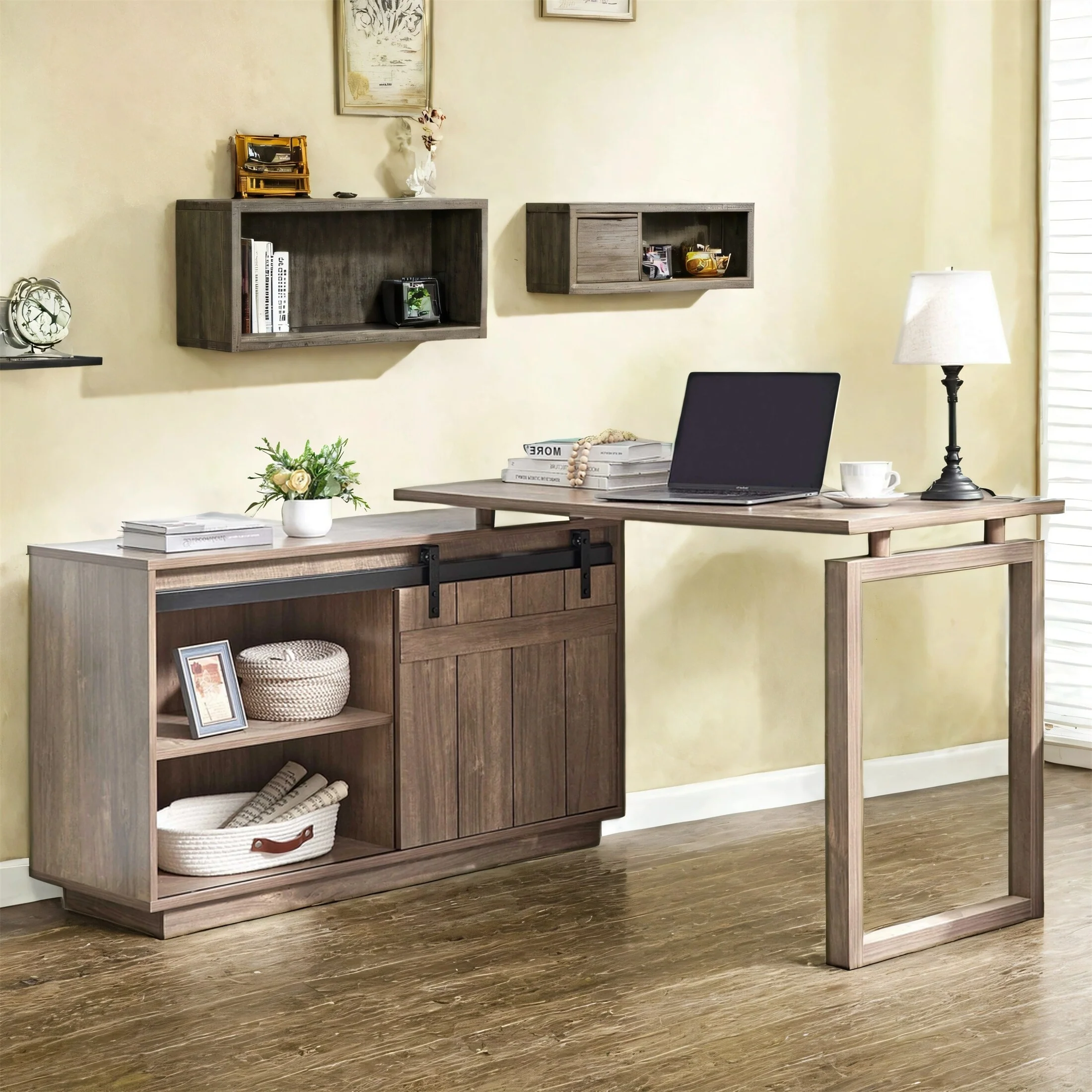 Rustic Brown Wood Metal Computer Desk with Bookshelf and Storage