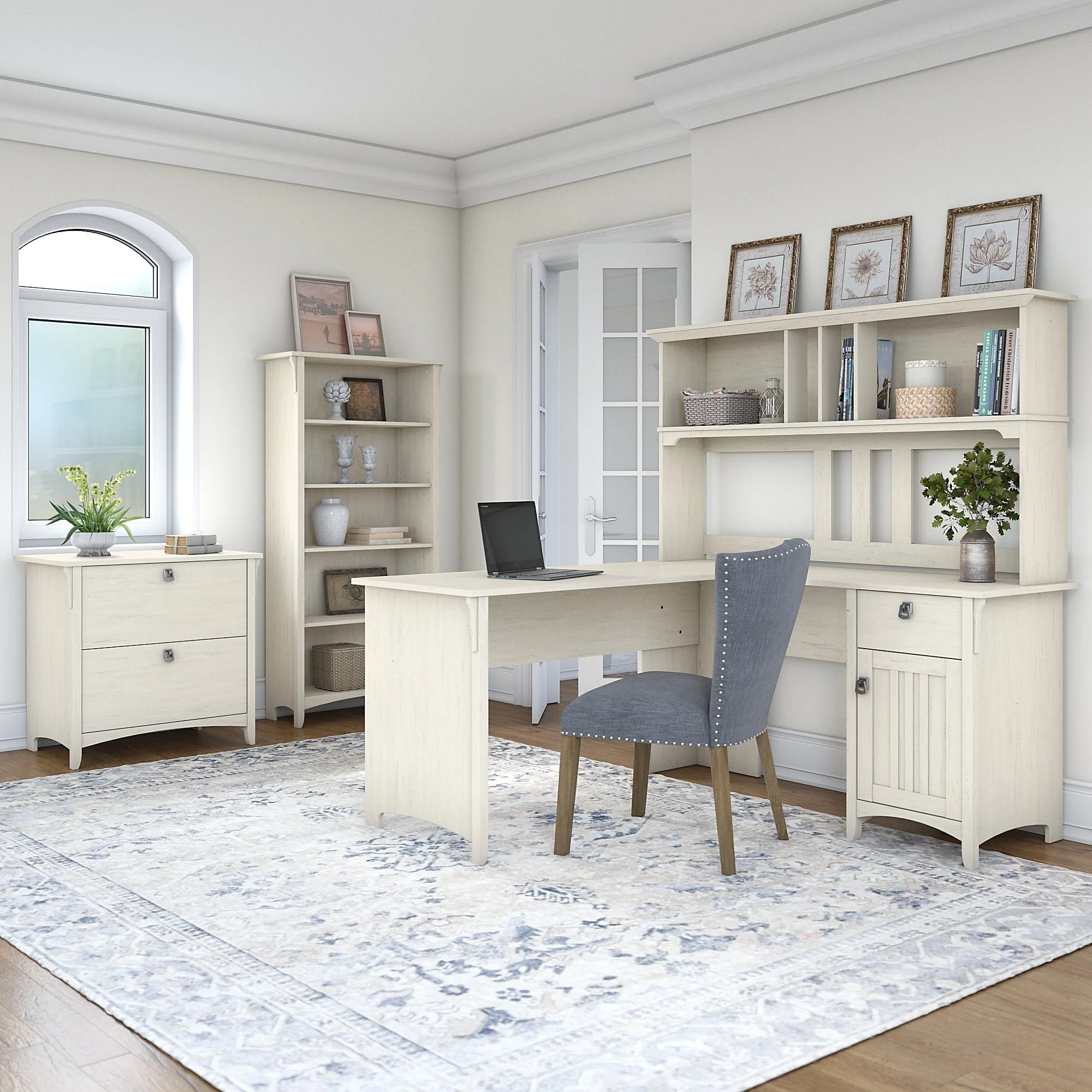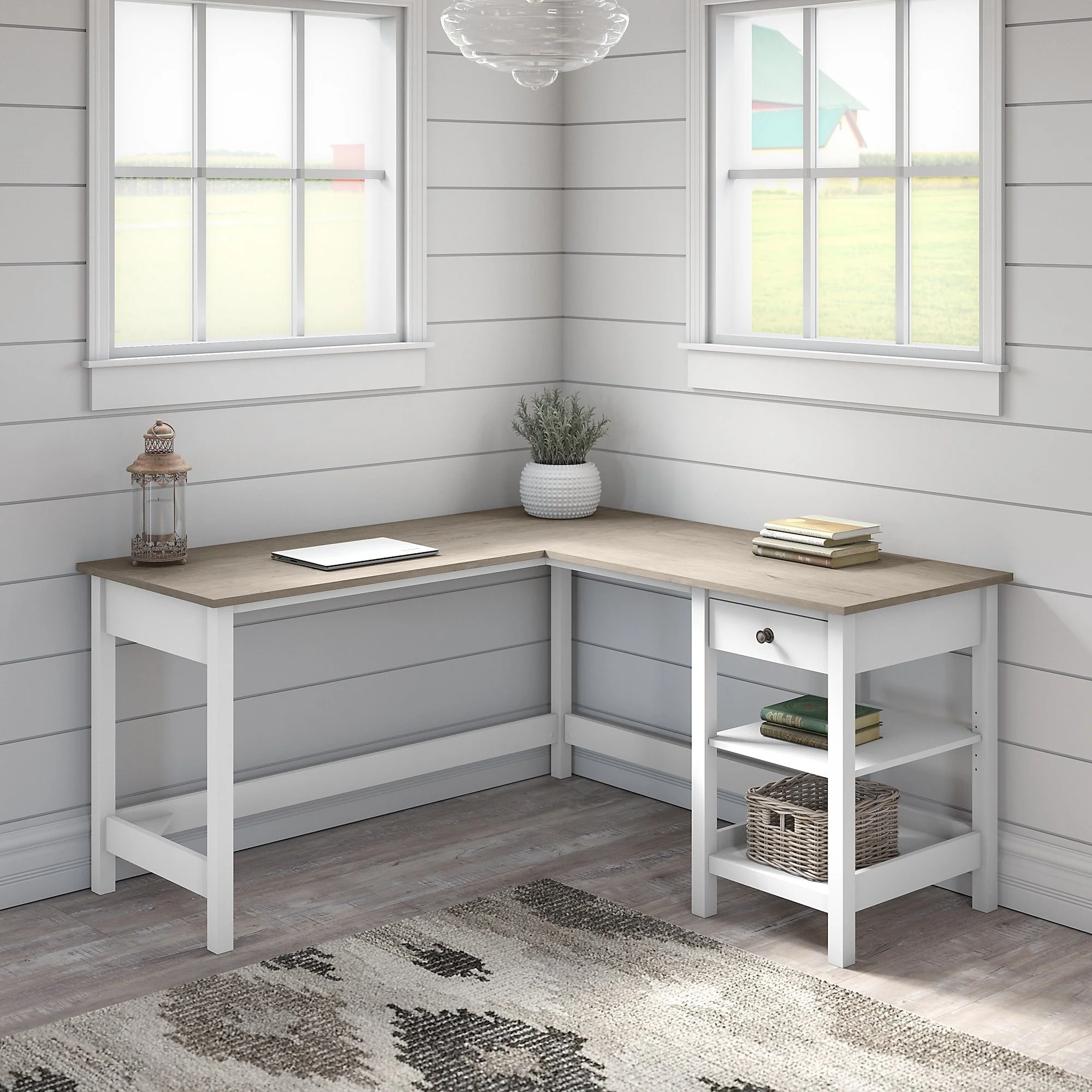 Bush Furniture Salinas 60W L Shaped Desk with Storage Hutch