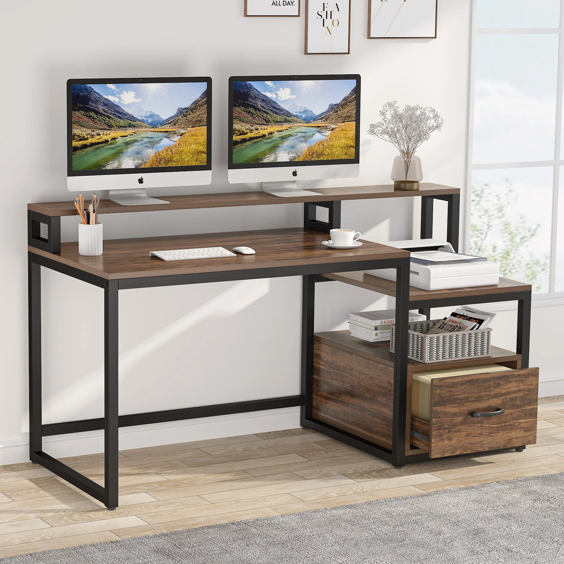 Computer Desk with Storage Shelves and File Drawer