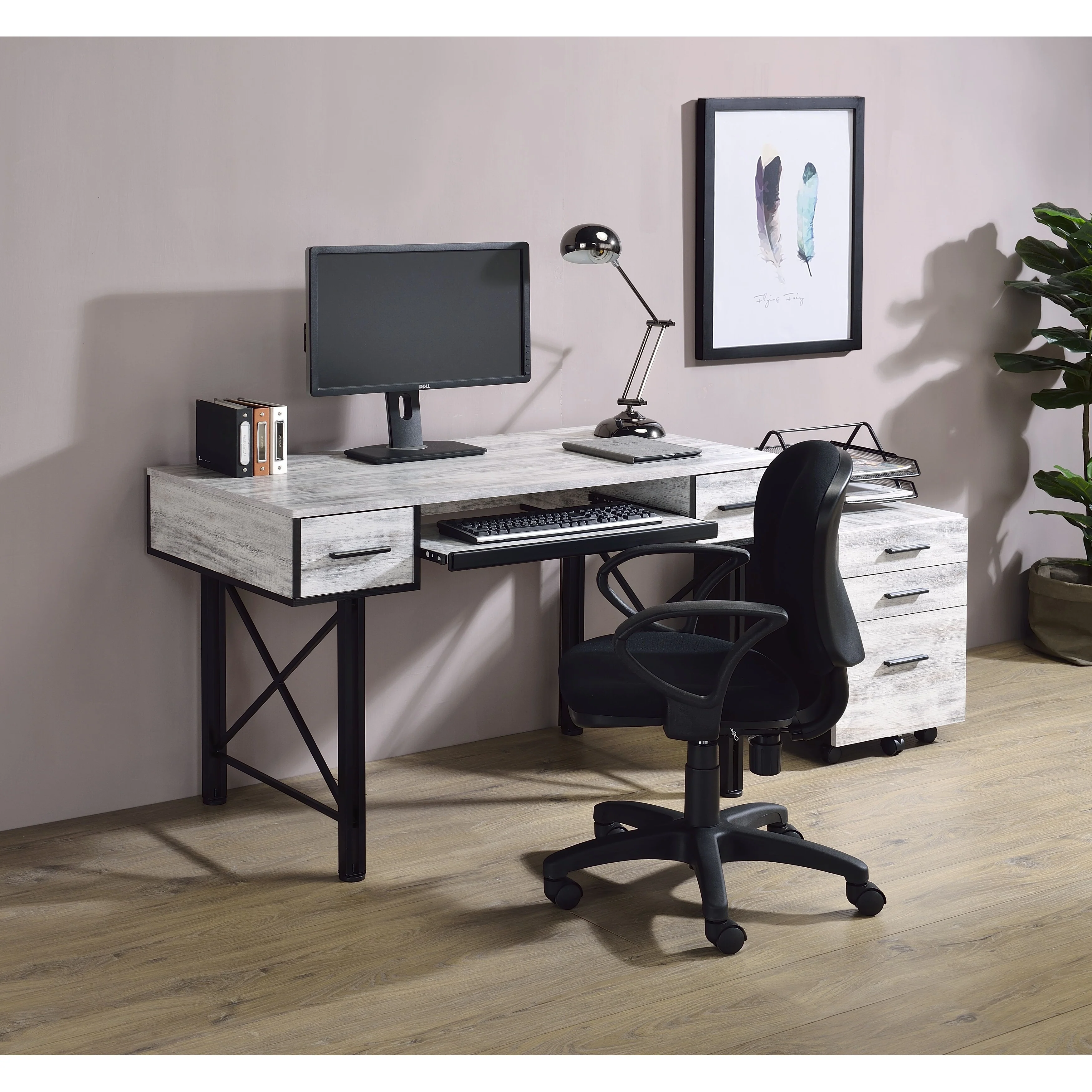 Settea Antique White & Black Finish Computer Desk