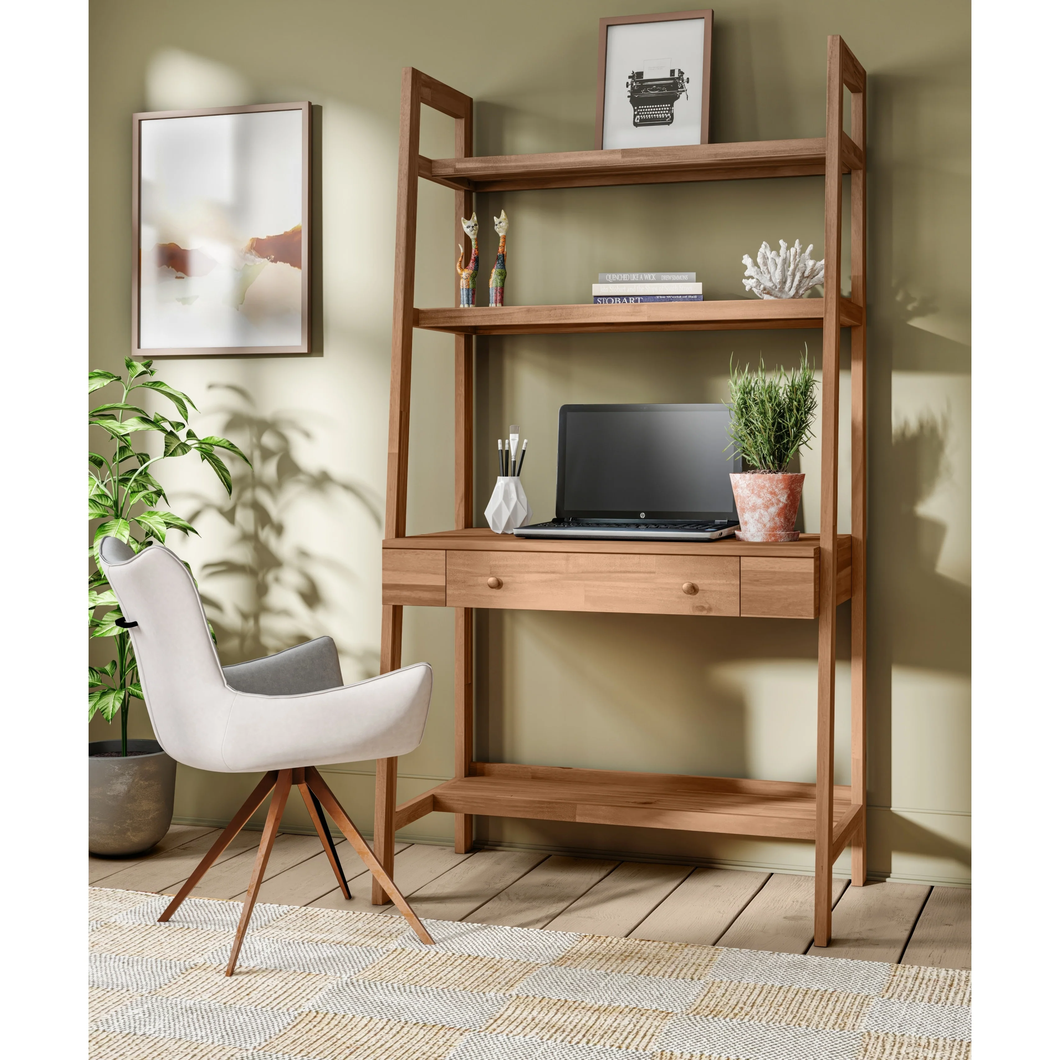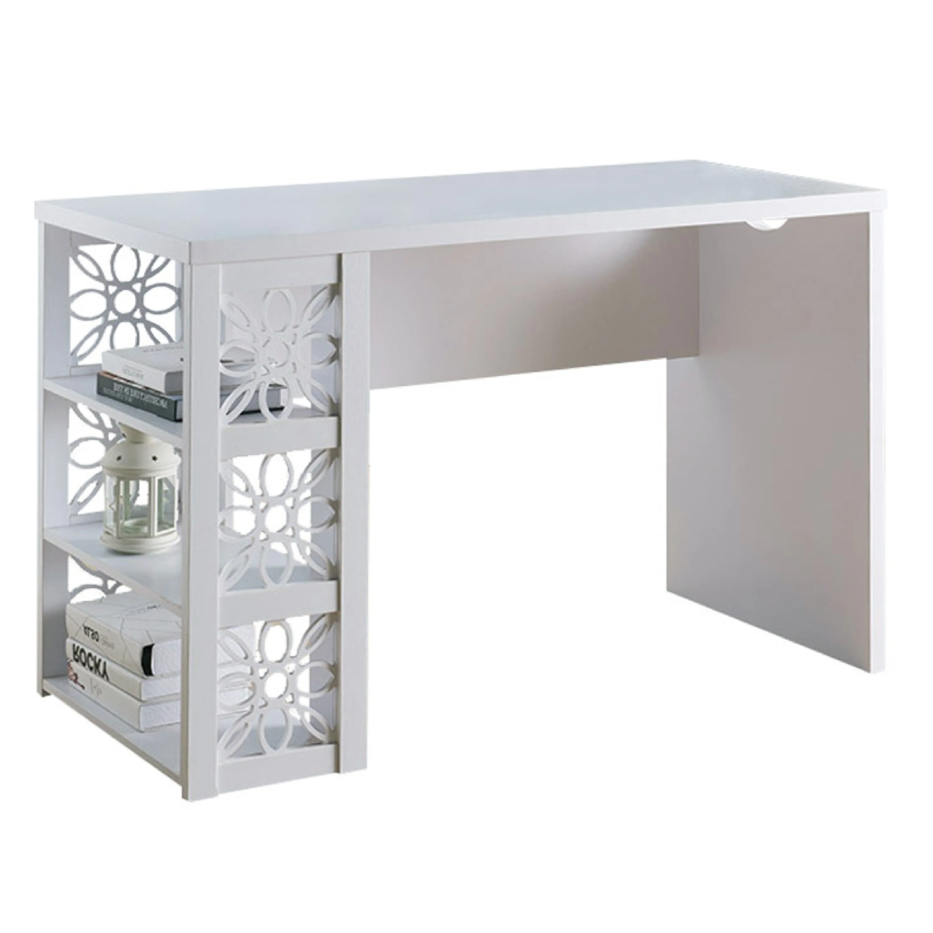 Writing Desk, 3 Storage Shelves, 47 Inch Modern Farmhouse White