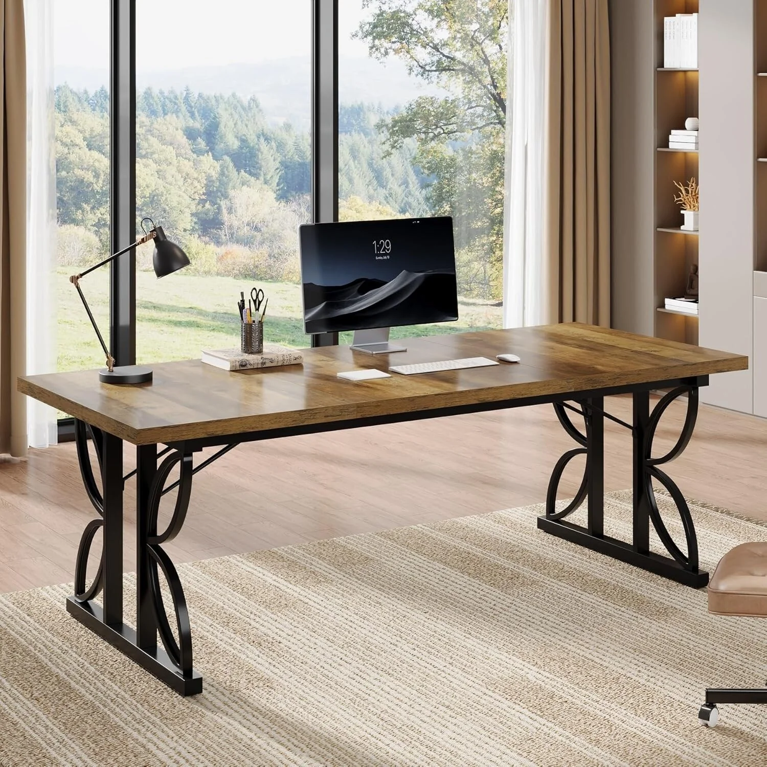 Contemporary 47.3 Wood & Steel Computer Desk Office Large Table