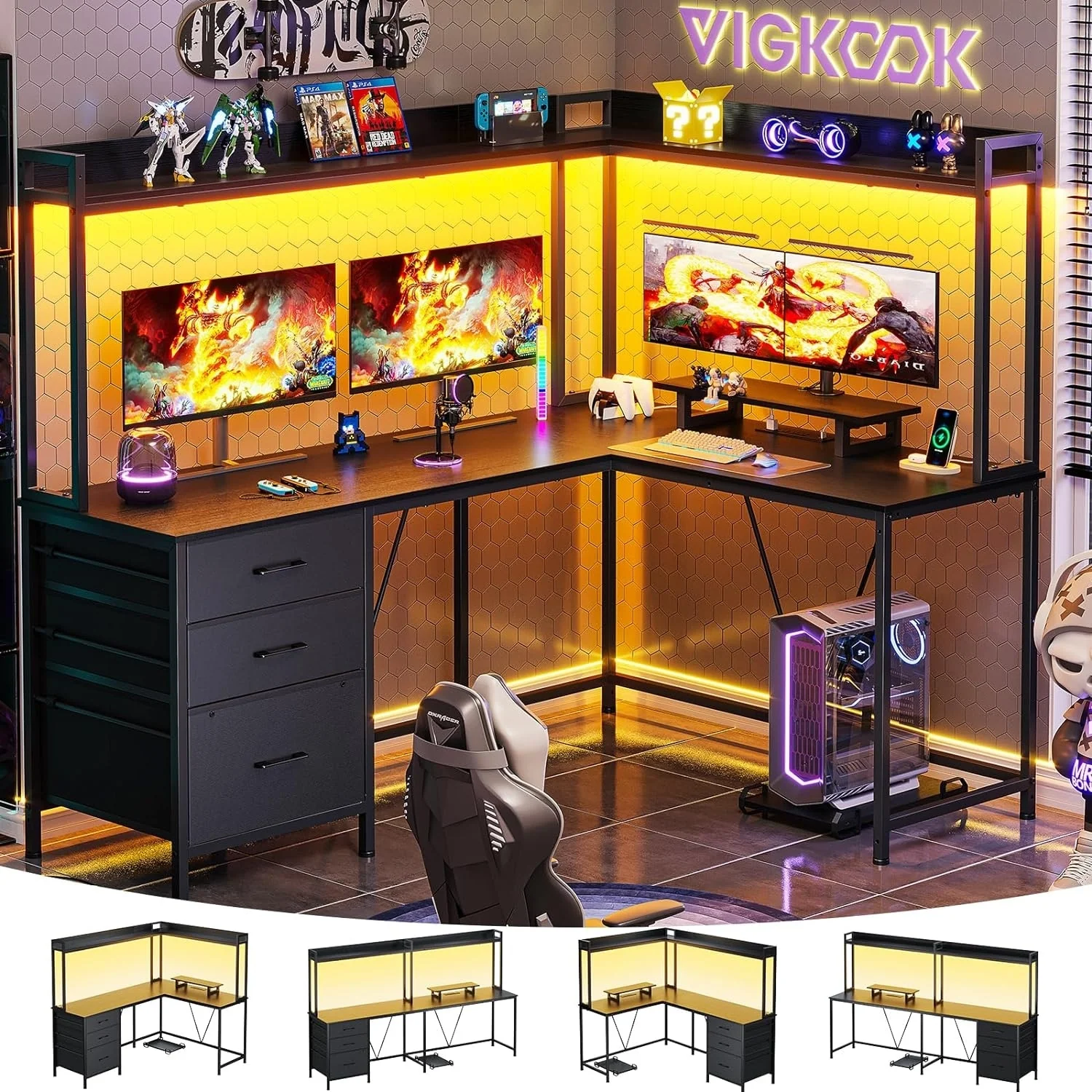 L Shaped Gaming Desk with Hutch Computer Desk with Power Outlet
