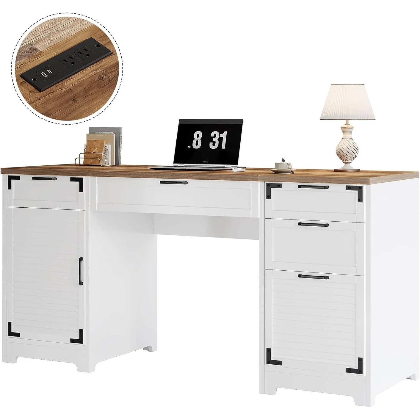 Home Office Computer Desk with Drawers/Hanging Letter-size Files