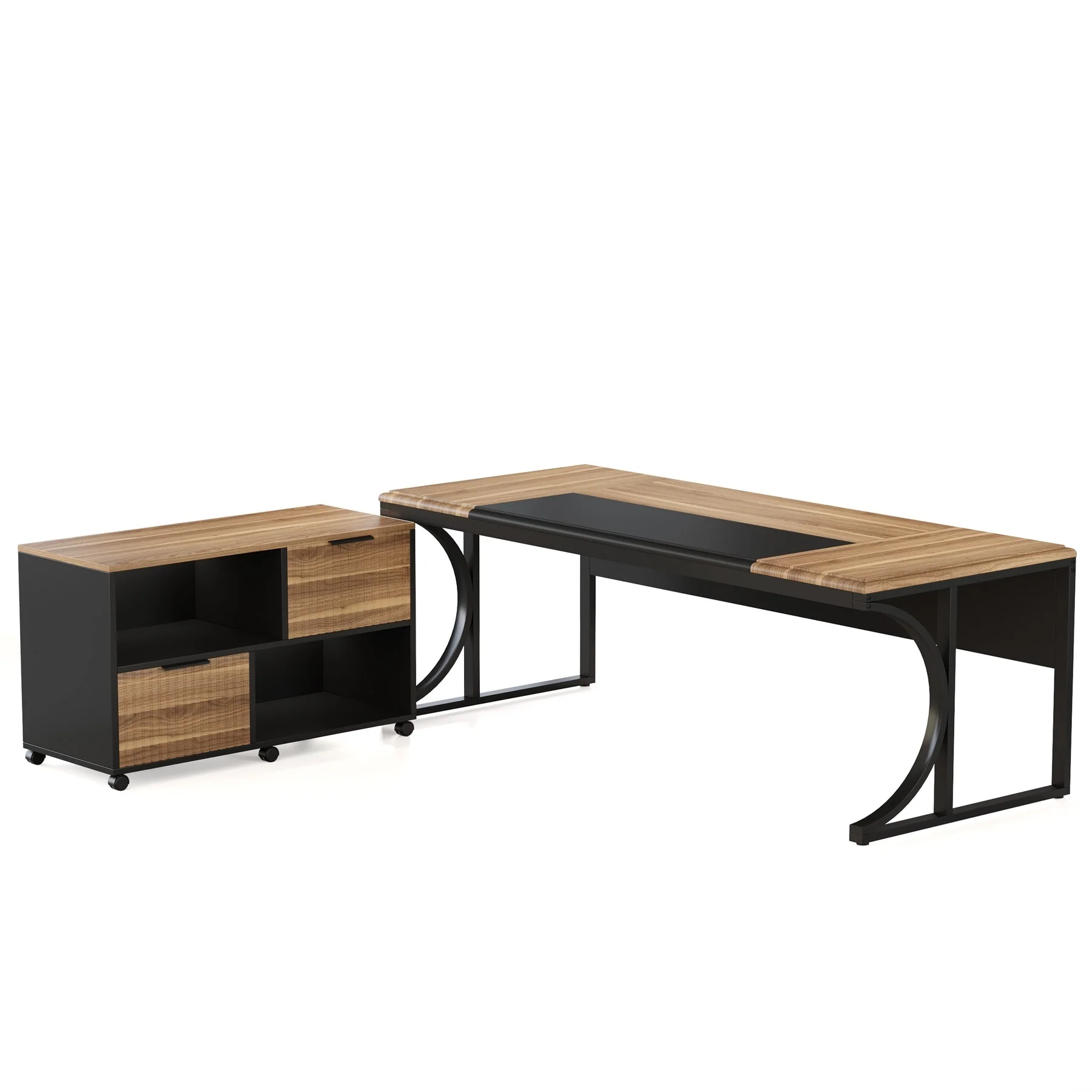 Carson Wood Open L-Desk & Return, Writing Table, Office Desk, Gray