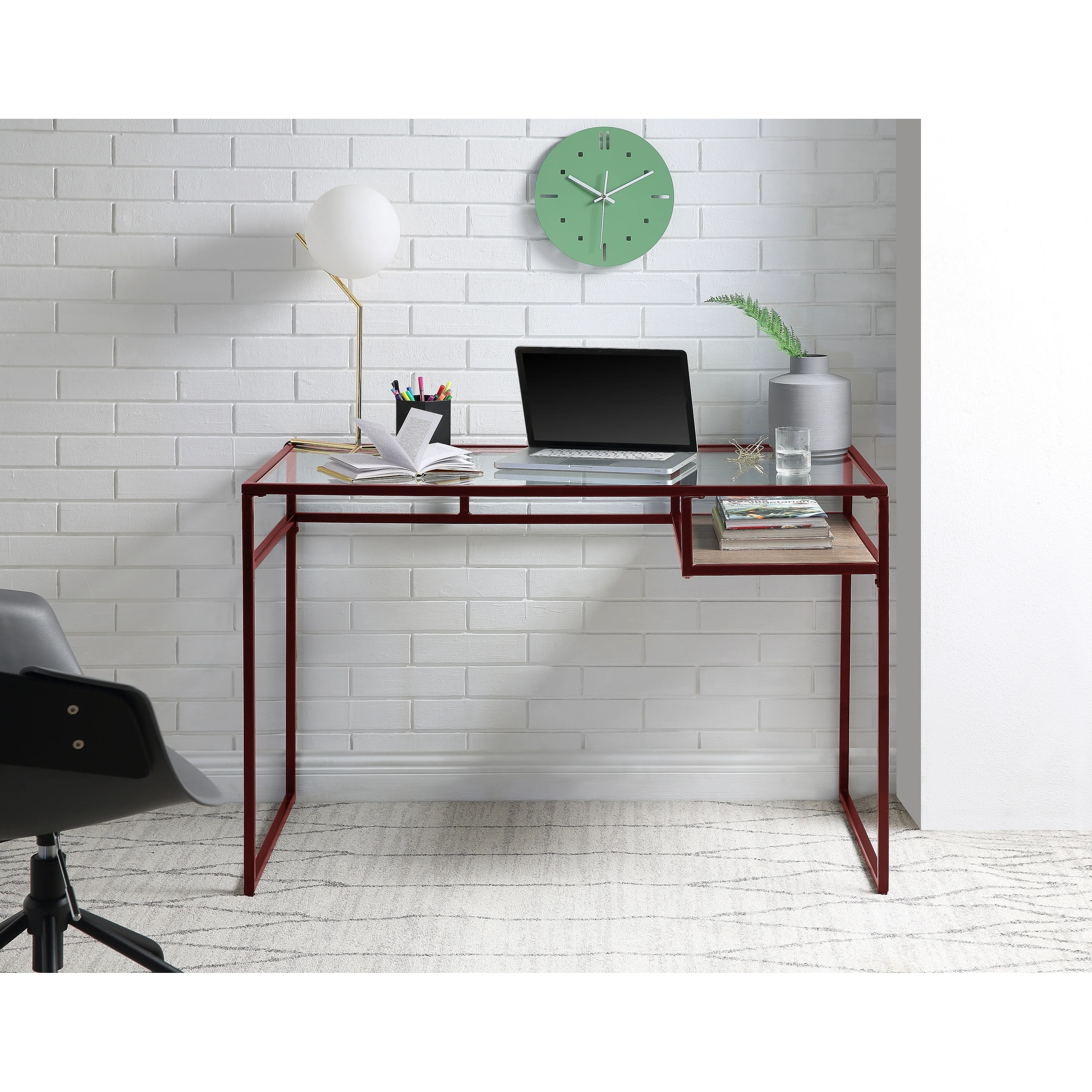 Yasin Glass Top & Red Finish Writing Desk